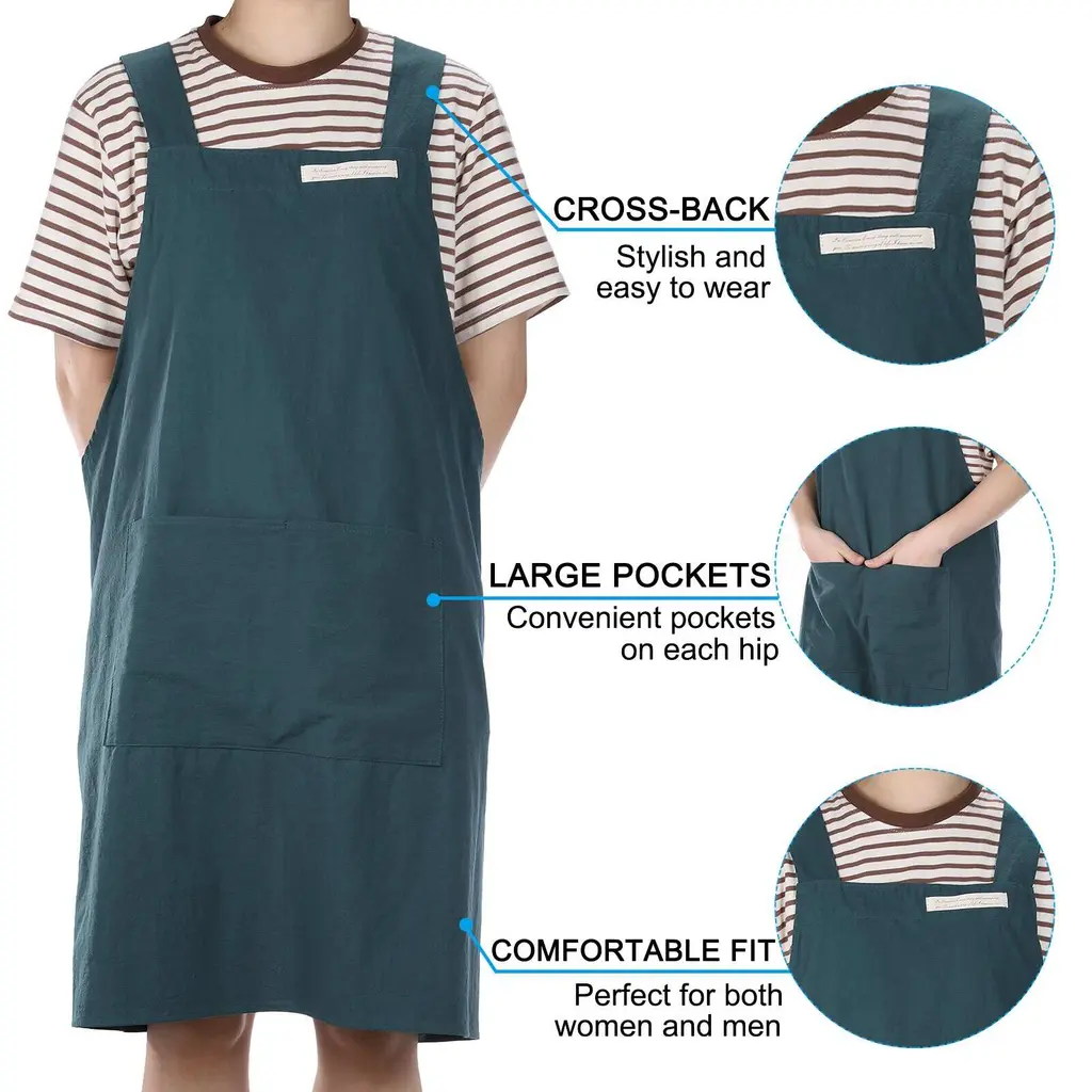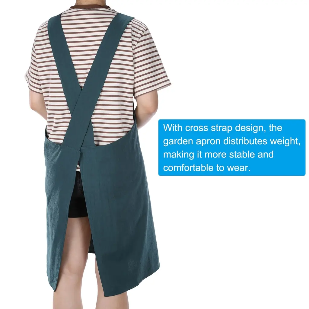 The aprons can be used for various purposes such as home, kitchen, cleaning, etc., providing you with neat clothes when working.Harvesting pouch apron is also suitable for those who enjoy gardening, crafts, planting and woodworking, it is a suitable and practical gift choice. People in occupation such as gardeners, plant harvesters and gardeners will also be happy with it.Whether in the kitchen or garden, this pinafore apron will be a convenient and stylish accessory.Specification:Material: CottonSize: 78 x 104 cm/30.7 x 40.9 inch (L x W)Strap Size: 65 x 5.5 cm/25.6 x 2.2 inch (L x W)Packing List: 1 Pack x Gardening ApronAdvantage:These kitchen aprons are design with large capacity pocket, the apron is equipped with a spacious quick release pocket for you to store tools and collected vegetables.The cotton apron is made of cotton material for comfort and safety. The thick material of this apron is highly absorbent so you can stay clean and dry while you work, widely used for Women and Men.With adjustable cross strap design, the garden apron distributes weight and the shape adjusts to fit your size, making it more stable and comfortable to wear.Instruction:Slip the apron over your body and secure it with the straps at the back.Note:Avoid exposing the apron to excessive heat or fire to prevent damage.