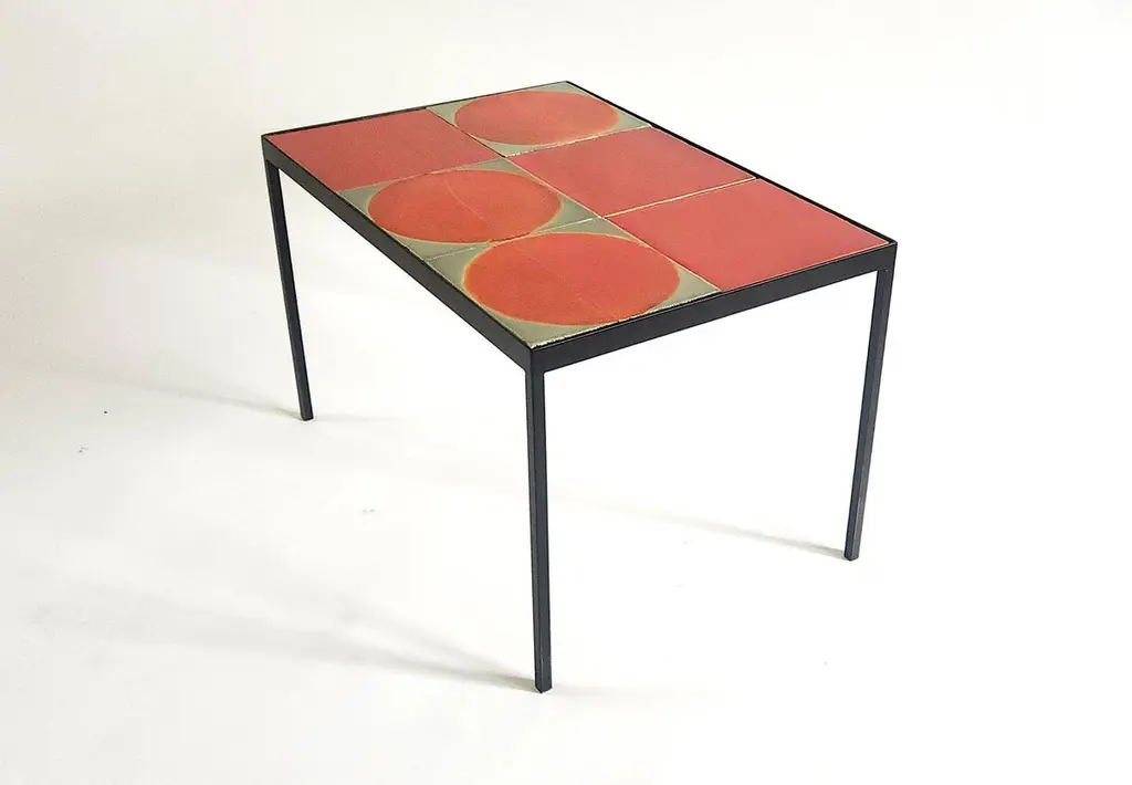 Gueridon Coffee Table With 6 Roger Capron Ceramic Tiles
