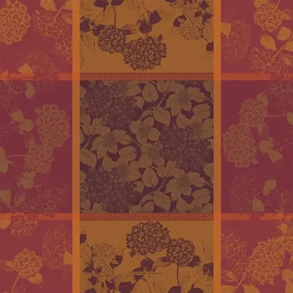 Experience the epitome of grace and beauty with this enchanting apron, adorned with a captivating rust floral pattern inspired by the elegance of hydrangeas. Crafted from premium 100% cotton, this apron showcases a meticulously curated design that appeals to those who have a deep appreciation for unconventional culinary allure. Since 1870, Garnier-Thiebaut has created classic and jacquard linens in the quintessential French style. Their linens have been used by the Four Seasons George V in Paris, the Mandarin Oriental Hotel in Geneva, The Ritz Carlton, Manama (Bahrain), Le Meridien Bora Bora, the Four Seasons Hotel, New York, and The French Laundry in Yountville.