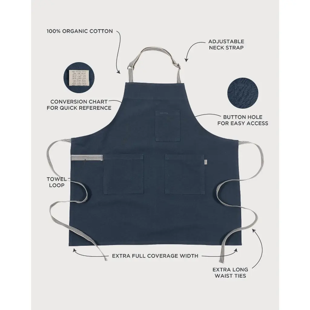 Kaf Home Rooted Sustainable Certified Organic Cotton Chef's Apron - Blue