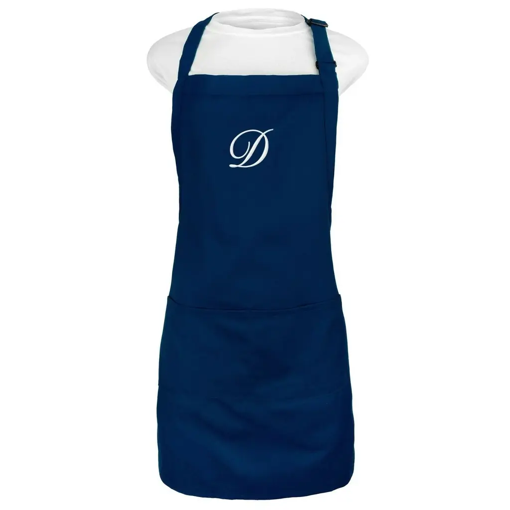 Kaufman Monogram Free Letter Navy Apron With Two Pockets - Navy/o