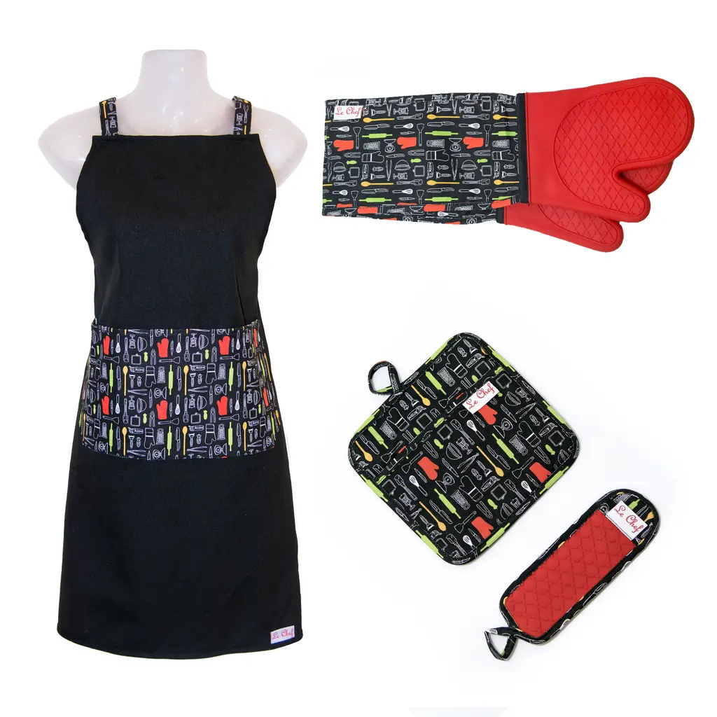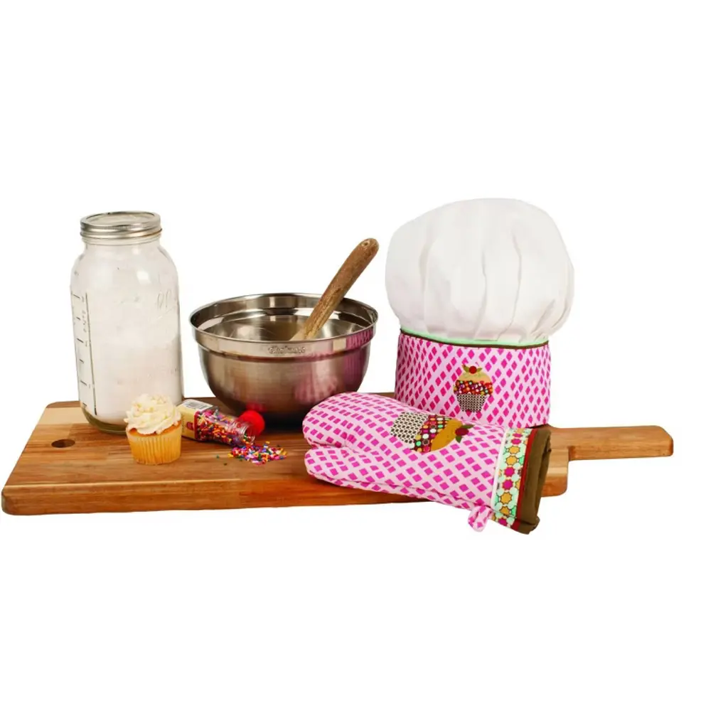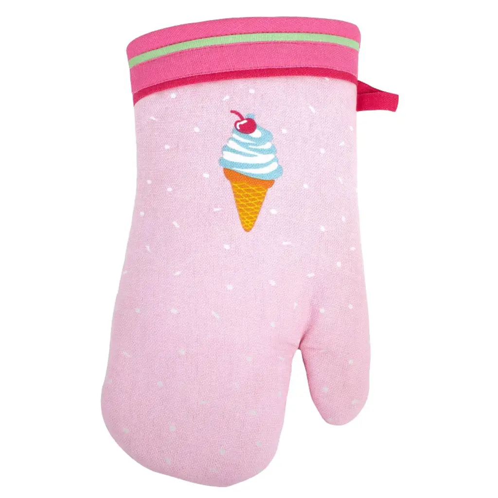Kids' Apron/mitt/hat 3Pc Set Pink - Mu Kitchen: Cotton Cooking Dress, Ice Cream Pattern