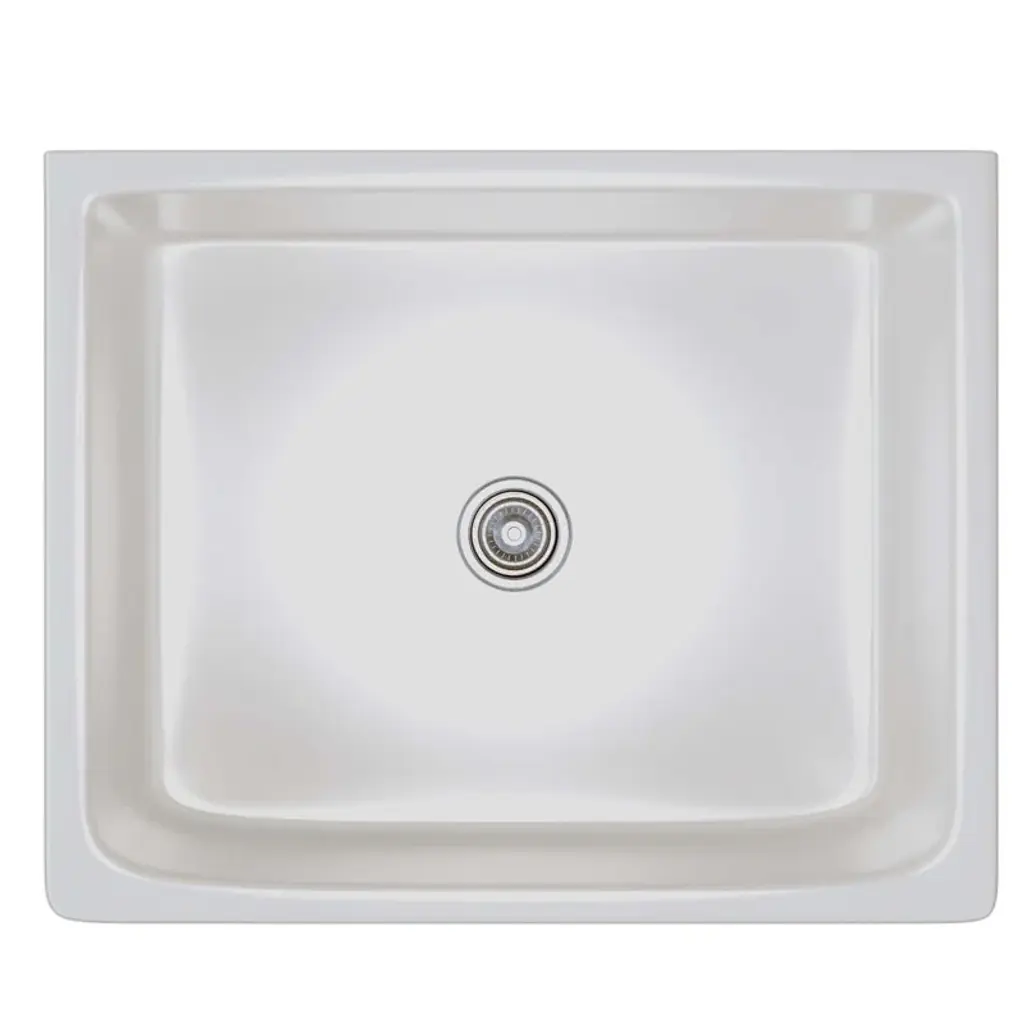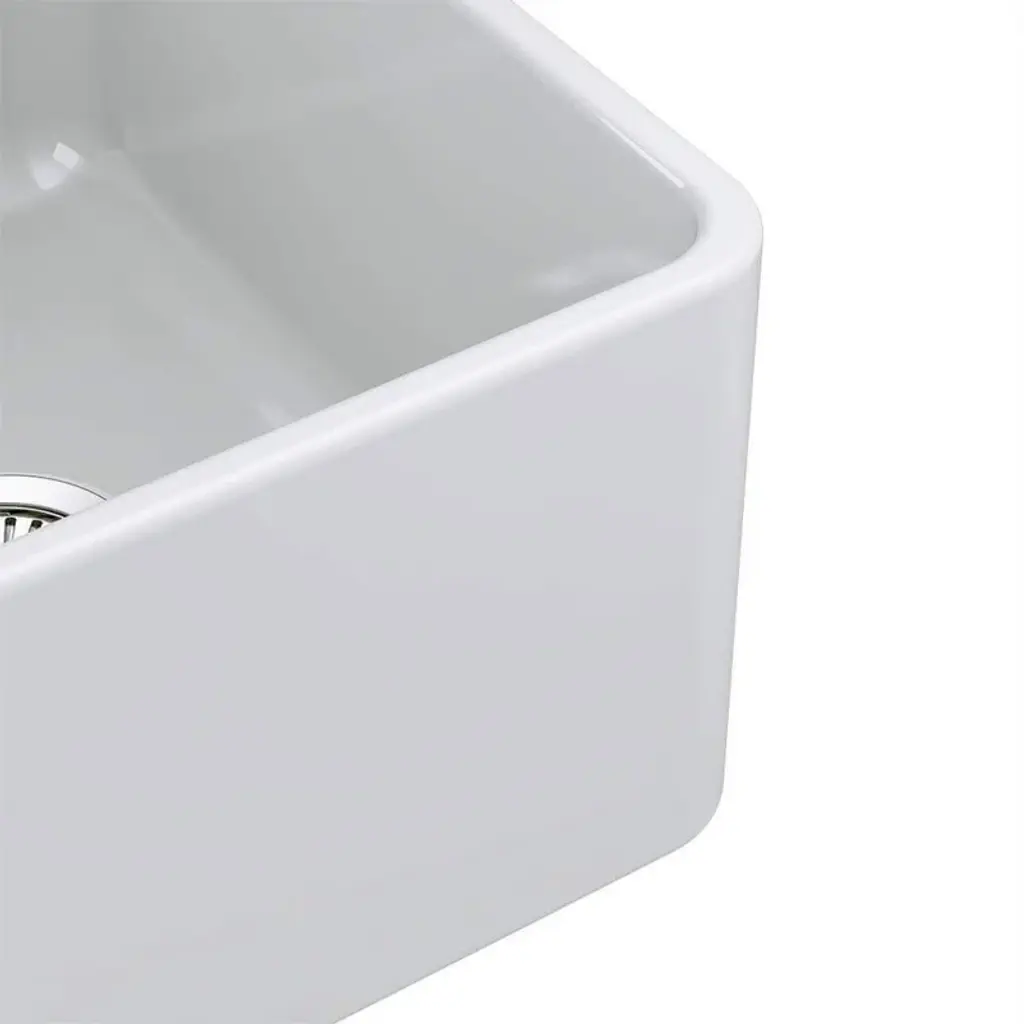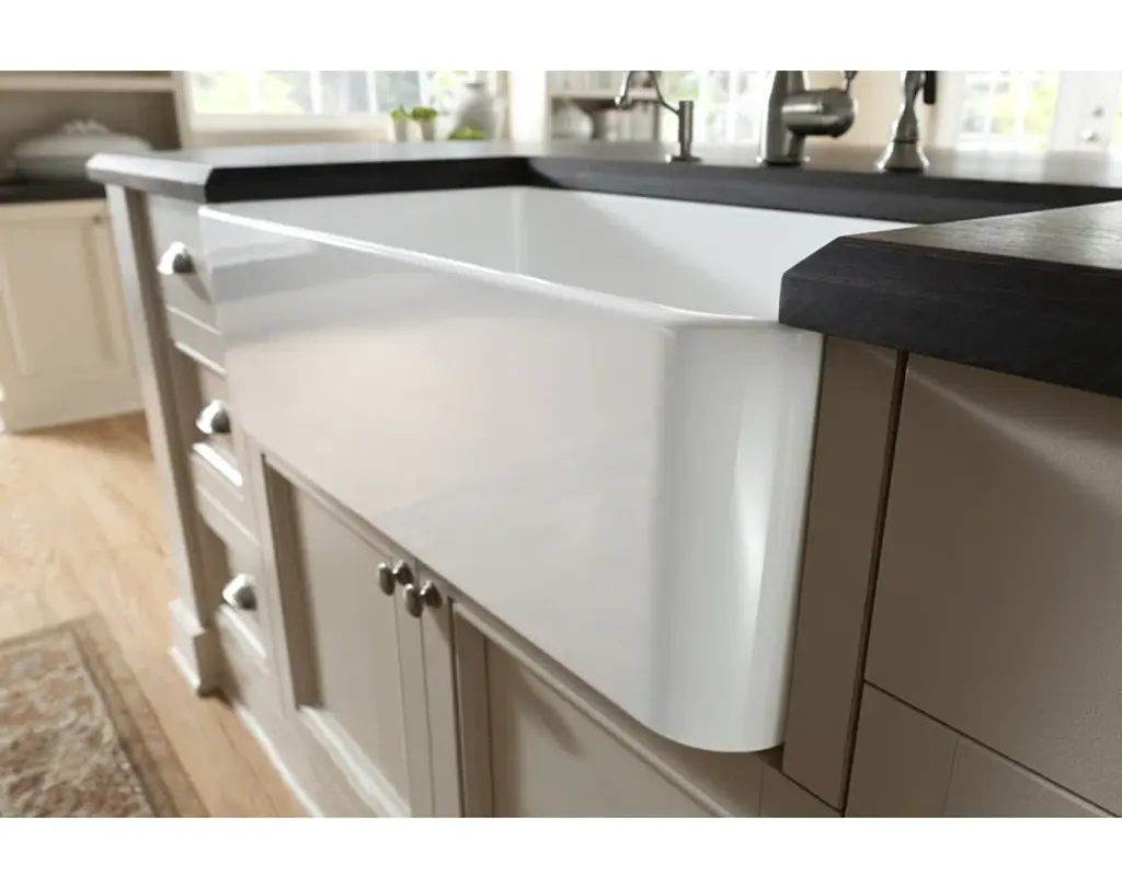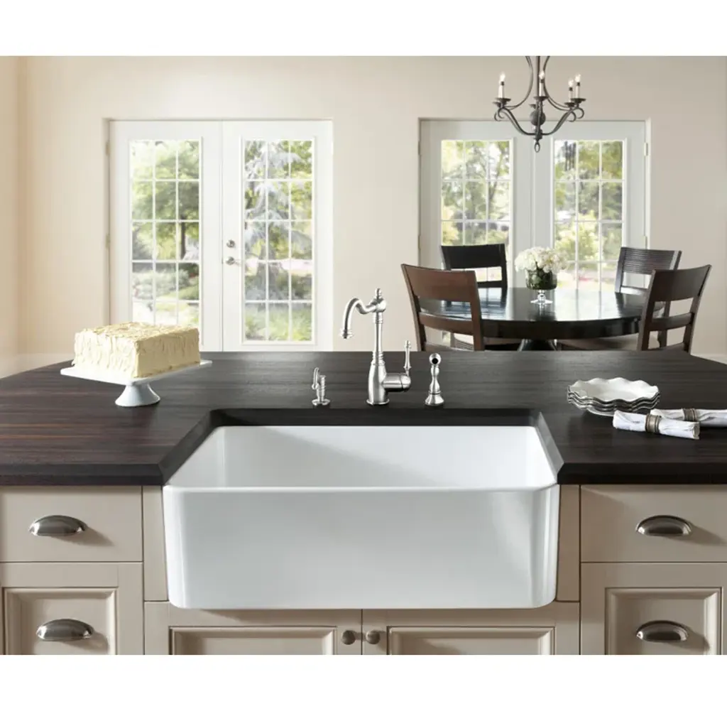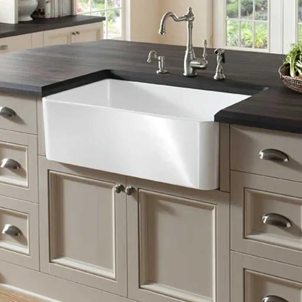 This apron sink brings a little bit of farmhouse charm home to your kitchen. It's made from heavy-duty fireclay in a glossy white finish, and is designed to stand up to constant use from your family. It's also stain-, rust, heat, and fade-resistant, so it's as low-maintenance as can be. This spacious top-mount sink measures 24" long and 18" wide, and has a deep basin that helps eliminate splashing and gives you plenty of room to clean up after arts and crafts or do the dishes. We know your kitchen gets busy, and this sink is just the right pick.