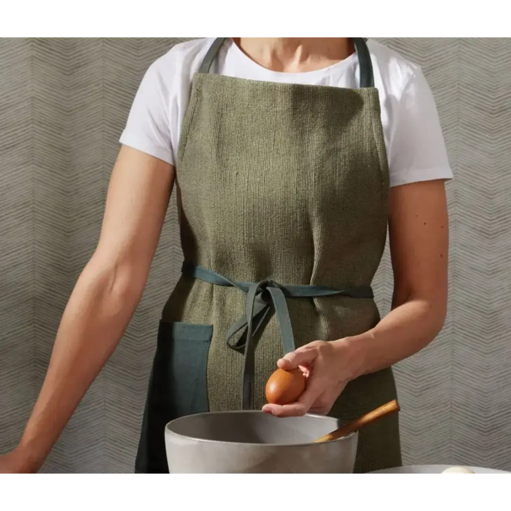 Finish: Forest Green Material: Cotton Jute Stylish chefs will love these cool color-blocked aprons in Forest Green or Mustard Yellow cotton jute. Features a deep pocket and adjustable straps. Available in adult and child sizes. Blue Pheasant's products are handmade with care by artisans using natural materials. They are not mass produced, so variation between products should be expected, and this is why we love them! It is these irregularities that makes Blue Pheasant what it is—a special brand whose collections are distinctly handmade, full of charm and originality you’ll never find in machine-made products.