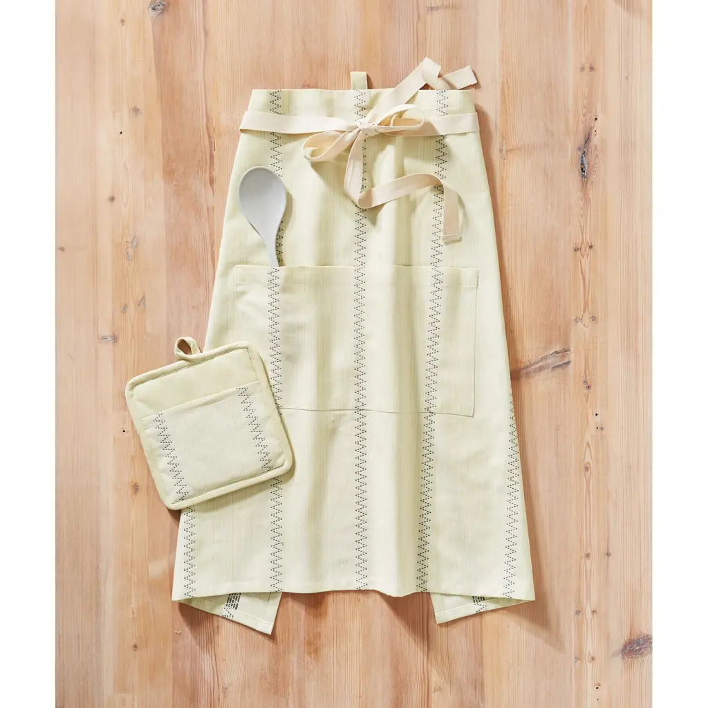 Natural Living Cafe Apron Citron Bamboo Cotton Kitchen Apron With 2 Pockets And Waist Ties Farmhouse Design, Cream - Cream