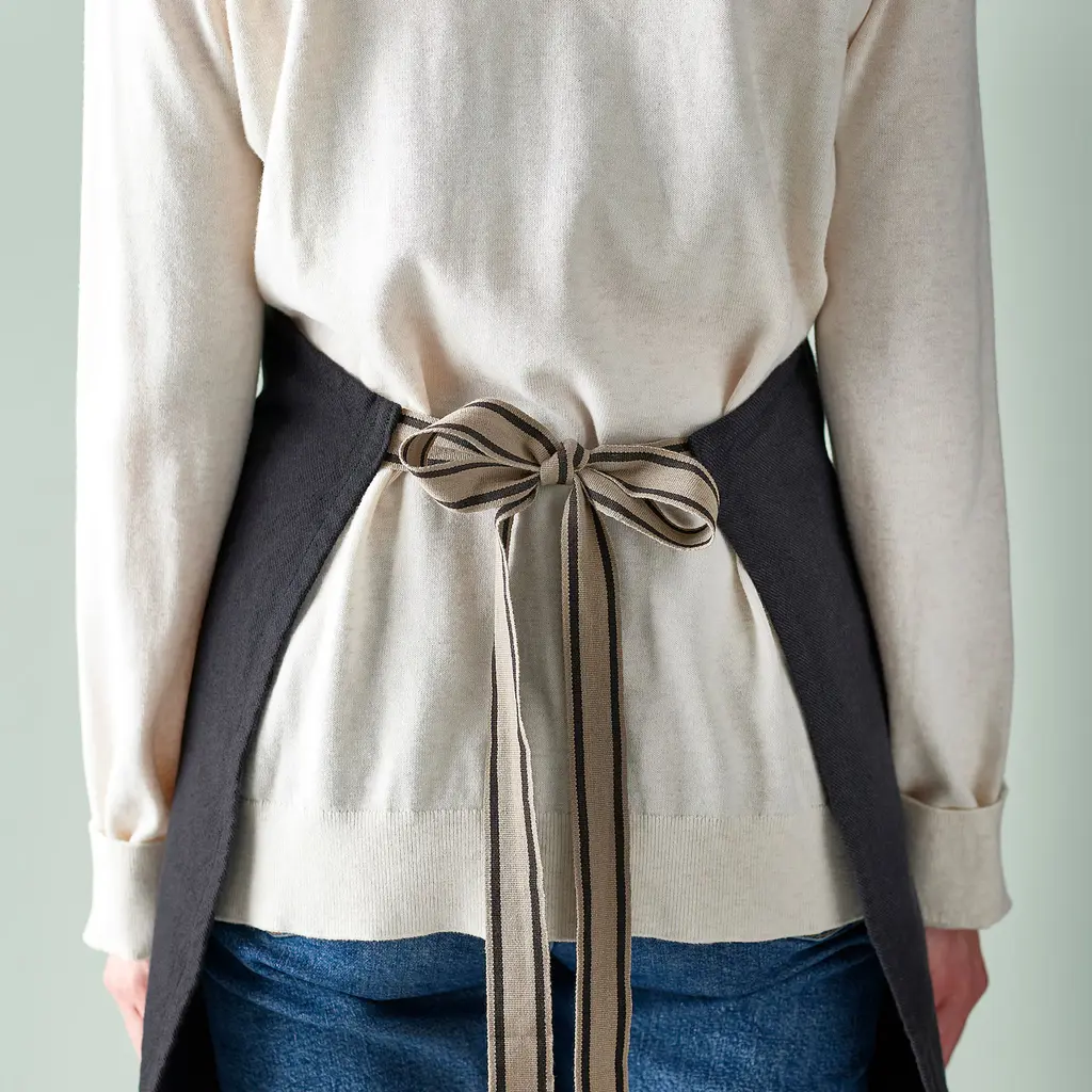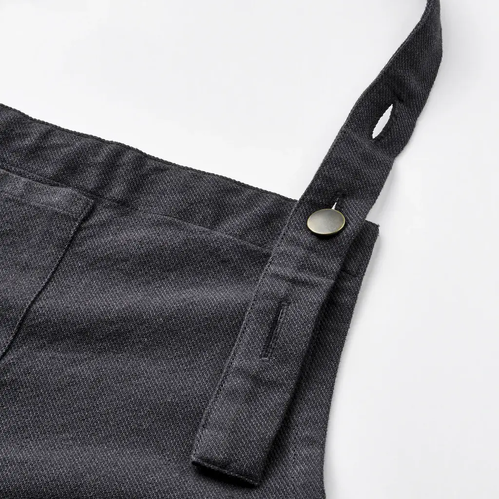 SANDVIVA Apron - dark gray 27x33 ". Adjustable neck-band fits most. Features loop to hang cooking tongs, etc. Practical pockets for small items. The loop makes it easy to hang the apron when not in use. One size.