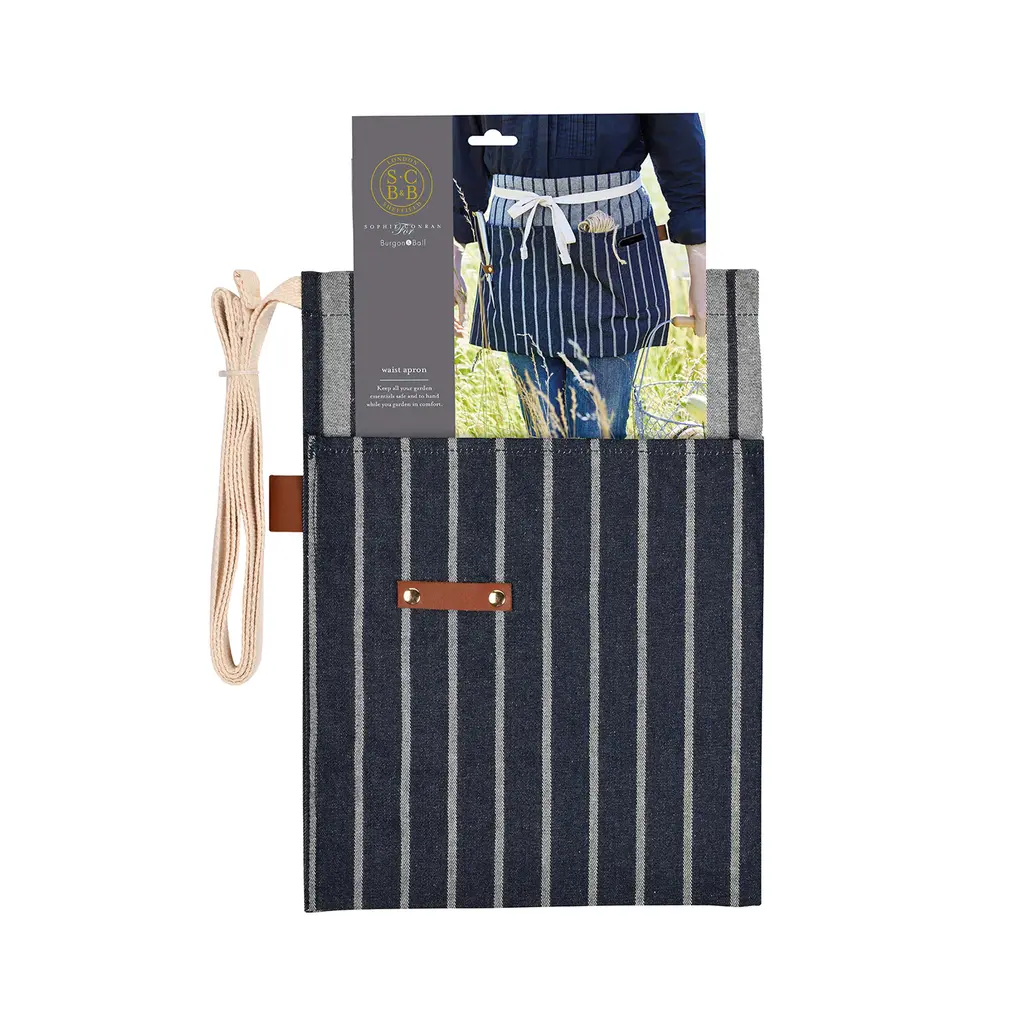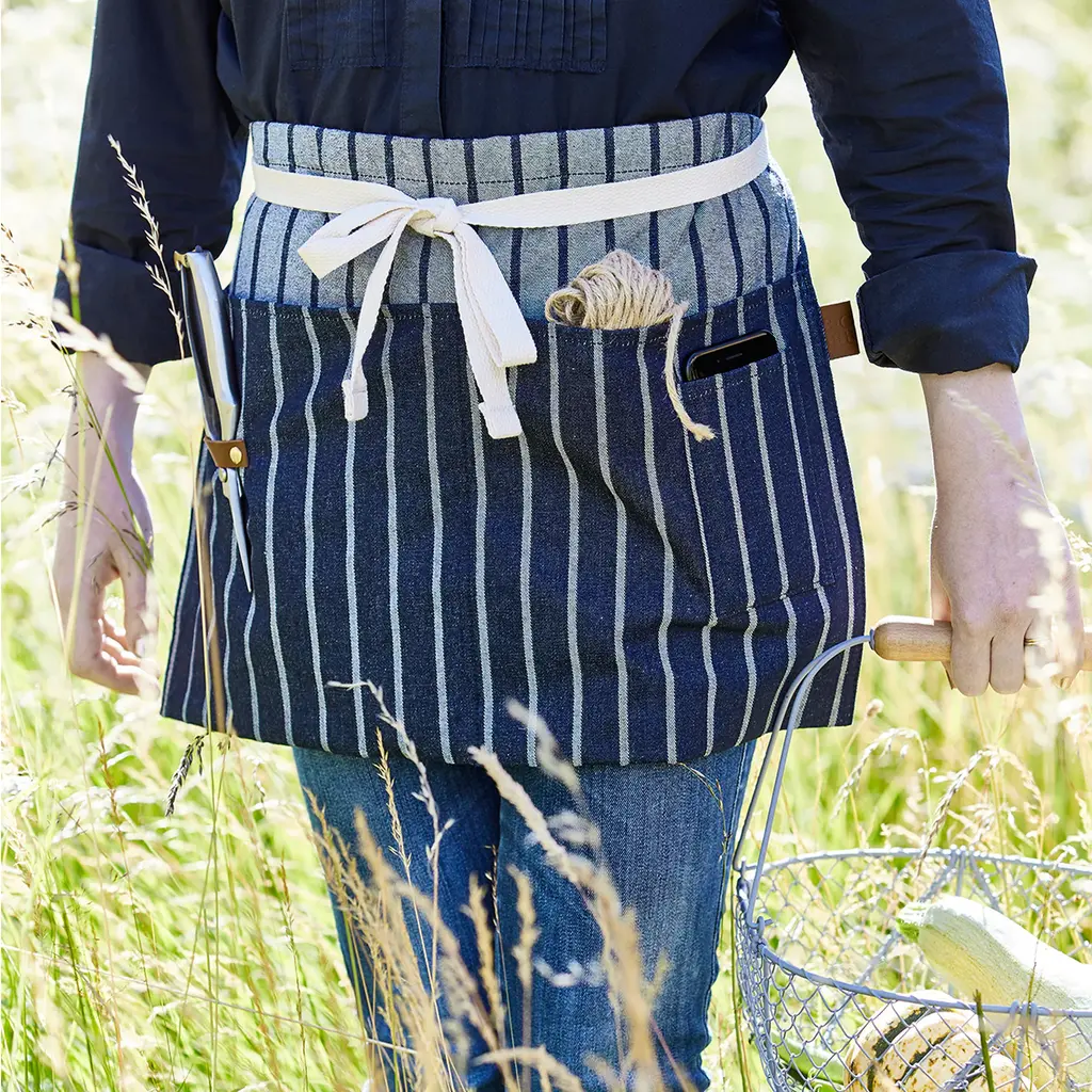 The Sophie Conran waist apron is a practical and attractive garden wear, which would be a wonderful addition for discerning gardeners who appreciate style. This lovely gardening accessory perfectly captures Sophie’s signature style, which blends classic design with subtle contemporary elements. The waist apron is not only fashionable but also practical. It will keep your clothes clean while gardening and features two deep pockets that are ideal for carrying all your gardening essentials. The smaller patch pocket is perfect for storing your phone or keys. For a complete set of matching accessories, you may also want to check out Sophie Conran’s gardener’s apron. This waist apron is available in both a classic stripe and a grey ticking stripe design.