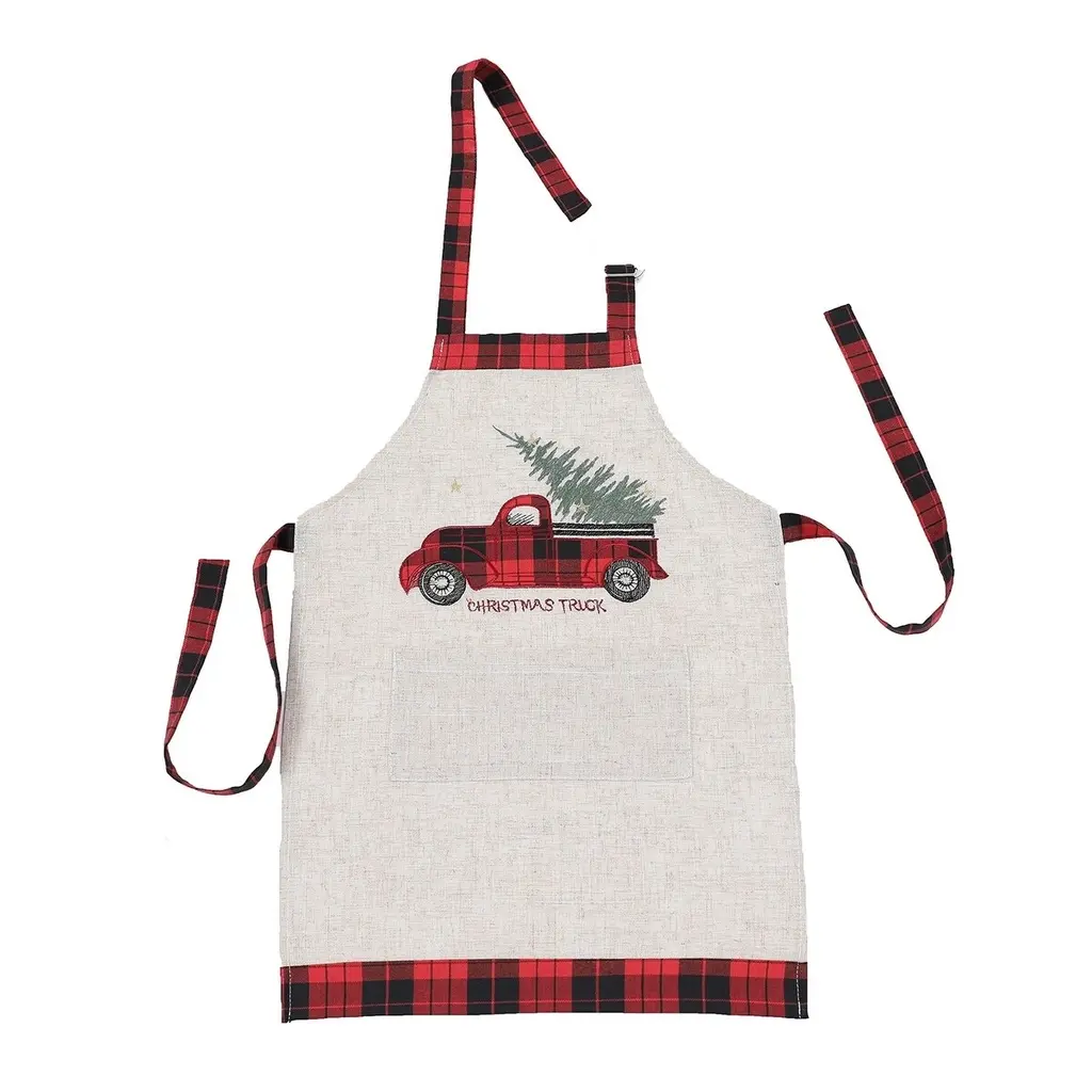 Tag Snowman Kids Apron - Christmas Kitchen Cooking Apron, White Multi Cotton, Machine Washable, 13" H X 25.5" L X 16" W