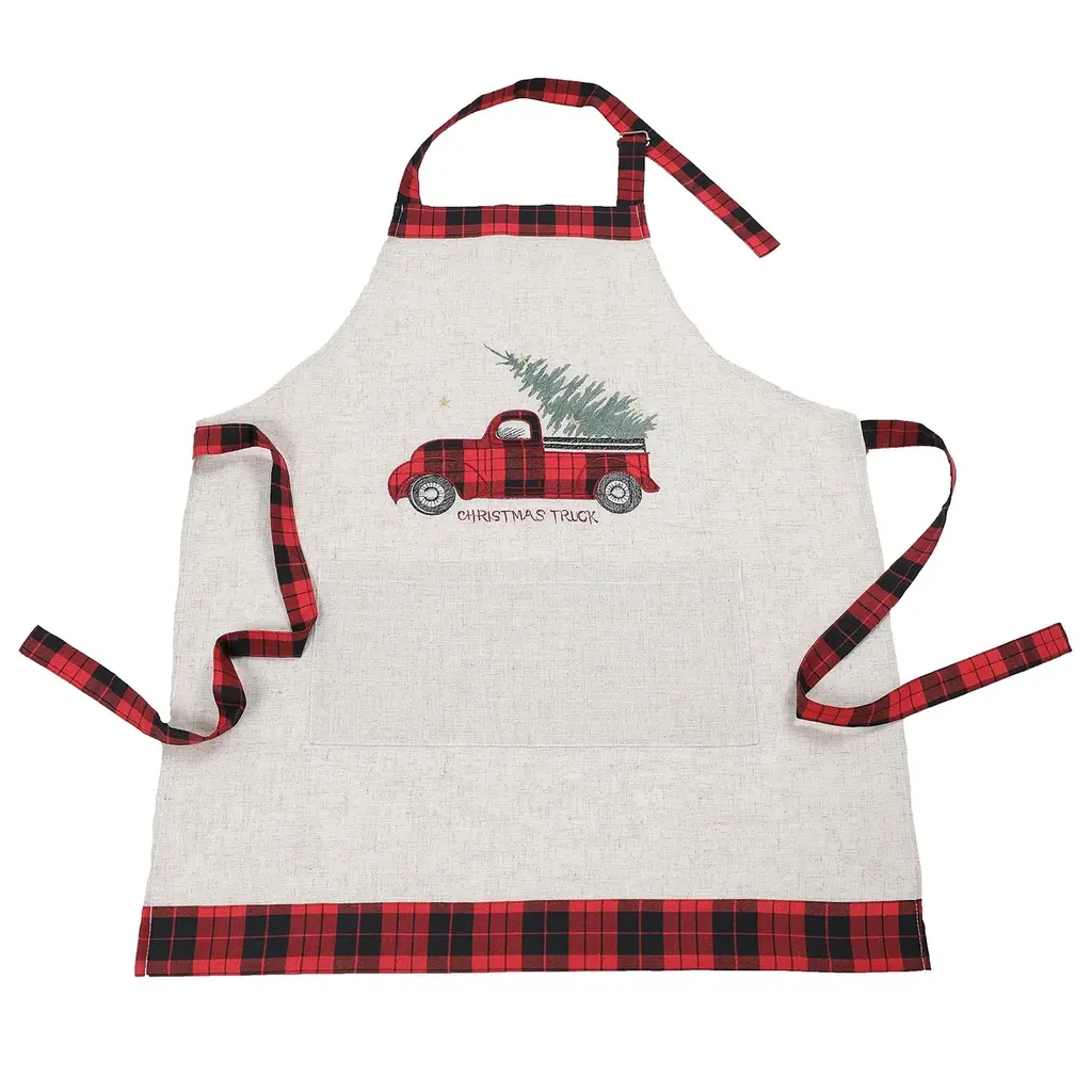 Vintage Tartan Truck With Christmas Tree Apron Adults Size 30 By 26-Inch - 30"x26"