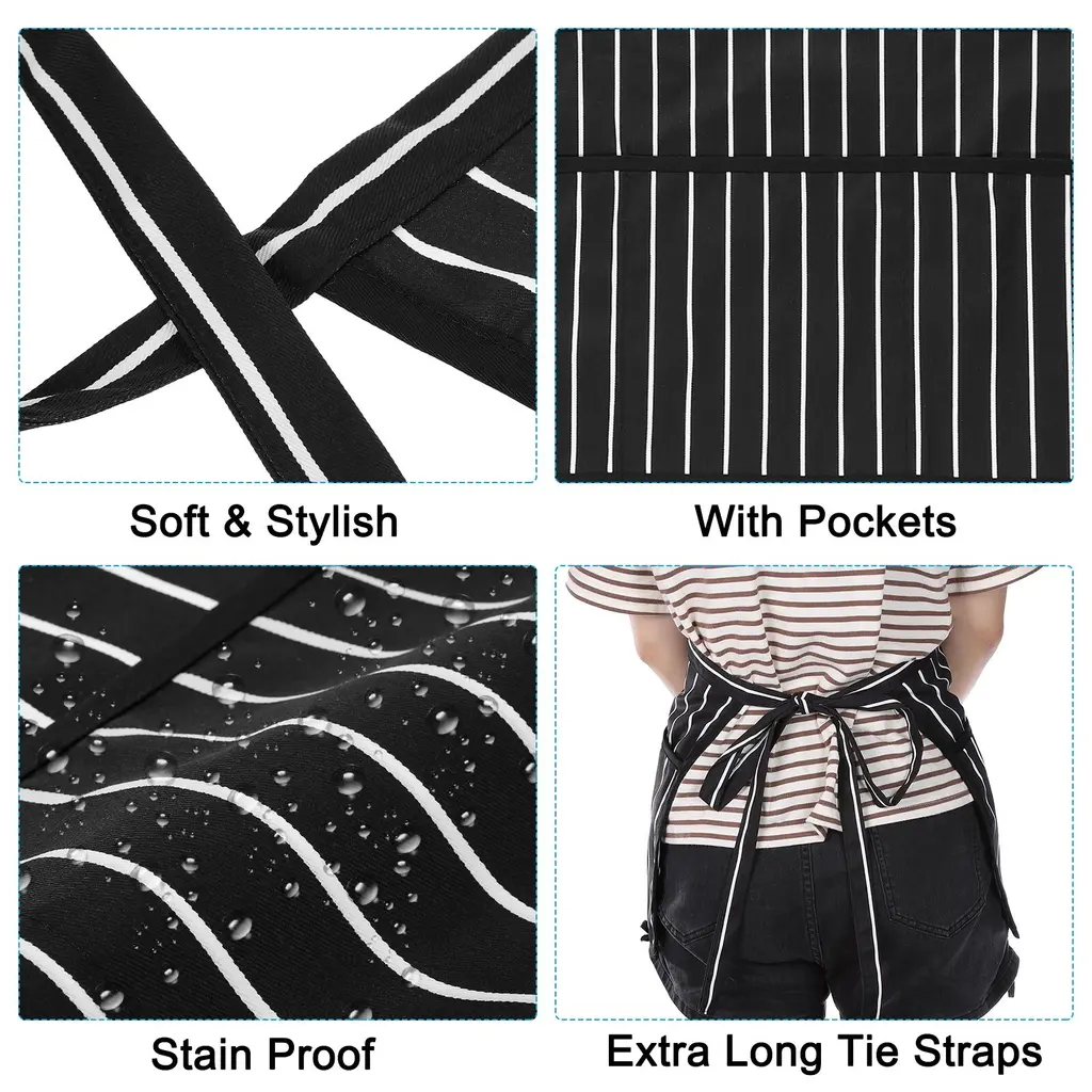 Waist Apron, Waitress Short Apron With 3 Pockets - Black White - 2 Pack