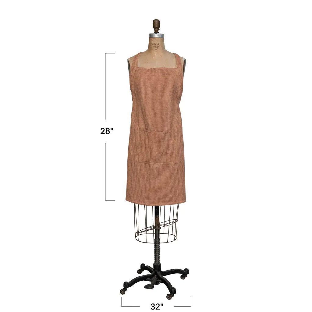 Woven Linen And Cotton Waffle Apron With Pocket - 32.0"l X 28.0"w X 0.1"h - 32.0"l X 28.0"w X 0.1"h - Terracotta