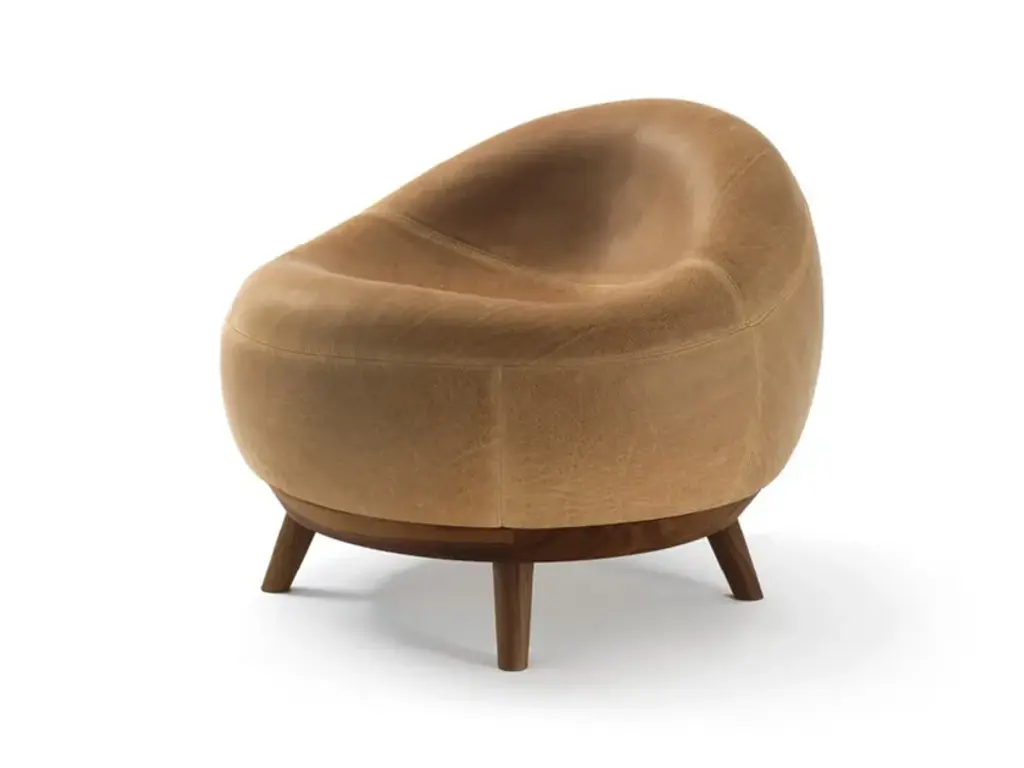 Contemporary Set 'Isola' By Amura Lab, Armchair + Ottoman, Leather Daino 01
