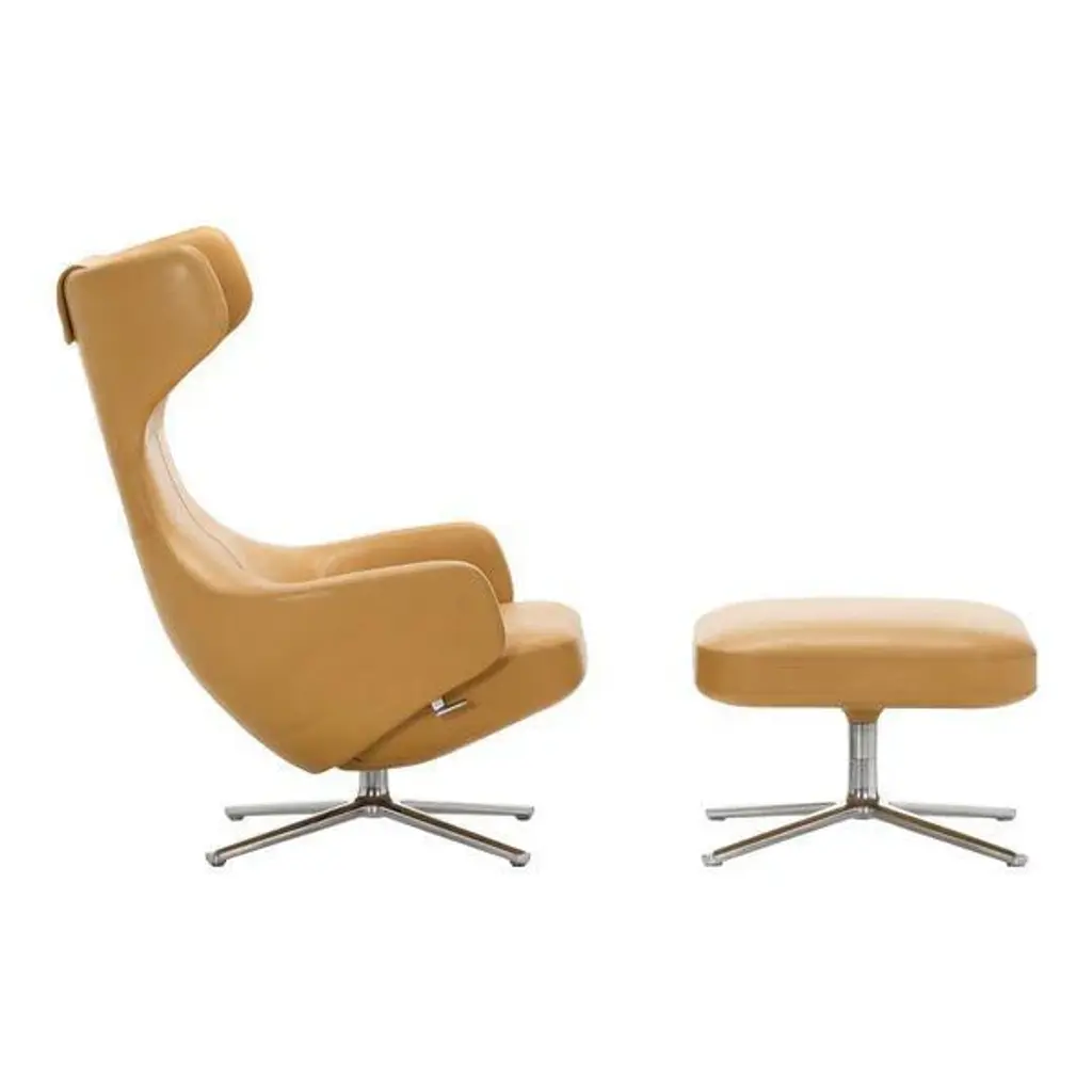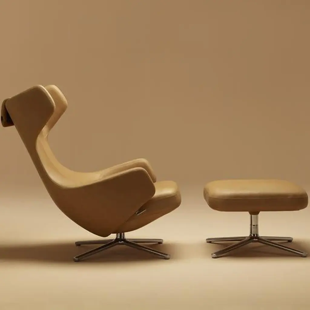 Jointly developed by Vitra and Antonio Citterio, the lounge chairs Repos and Grand Repos introduce a new level of comfort and flexibility to the home environment: with their generous padding, inviting armrests and high backrest, these elegant swivel-based lounge chairs impart an image of supreme comfort. Thanks to the synchronised mechanism concealed beneath the upholstery, sitters can move from an upright posture to a reclined angle for resting and lock the backrest in any position. The resistance of the backrest can be manually adjusted to the user's weight. This ensures great comfort and optimal spinal support across the entire range of movement.