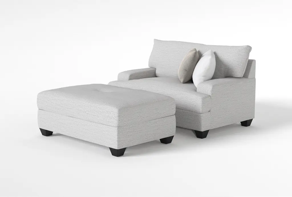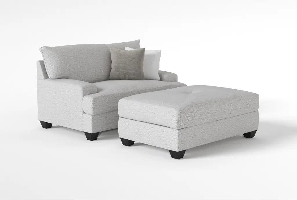 Harper Down III Beige Performance Fabric Chenille 61" Oversized Chair/Ottoman Set