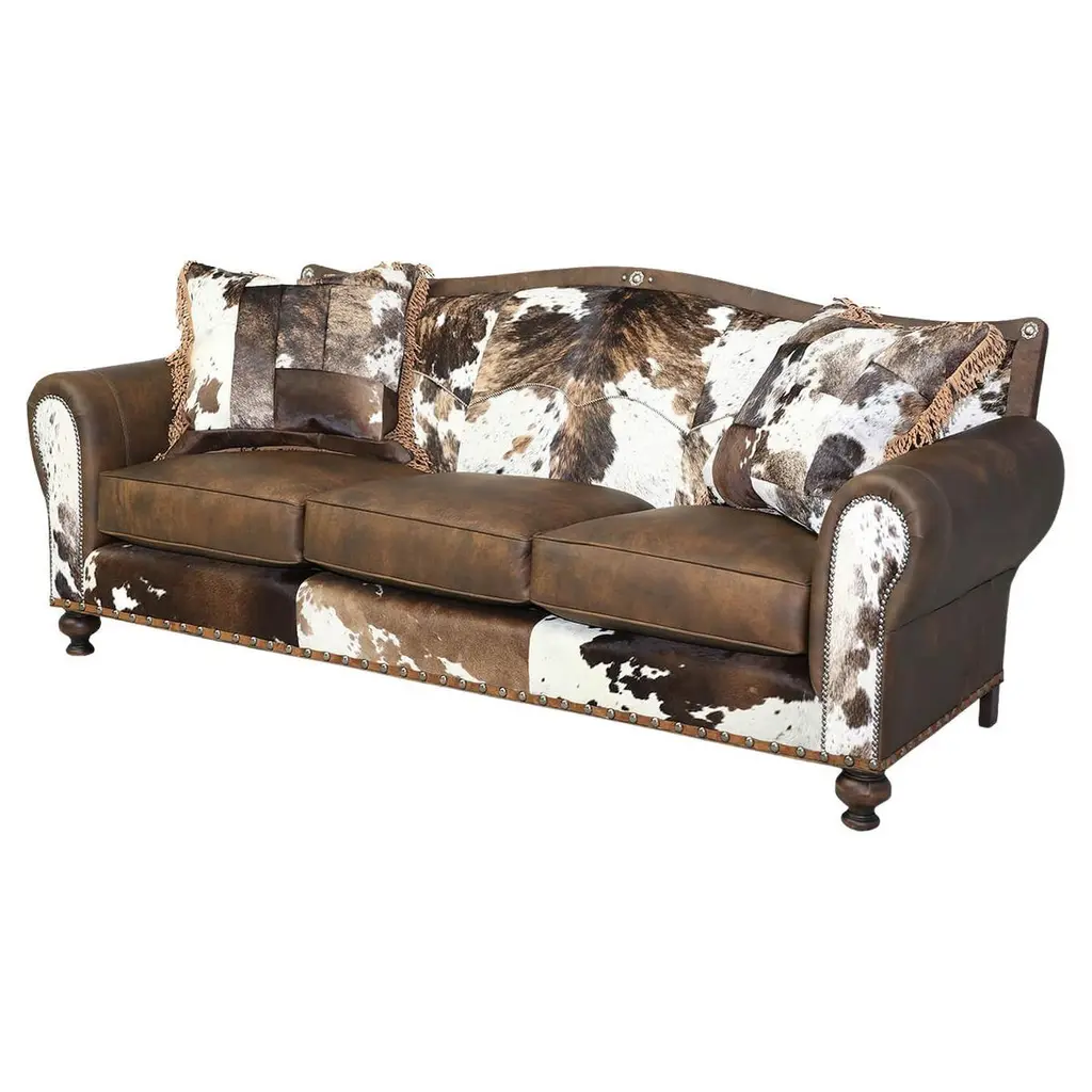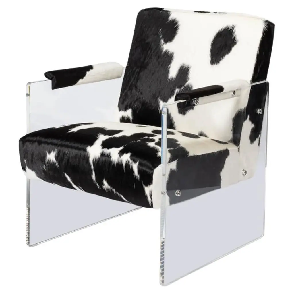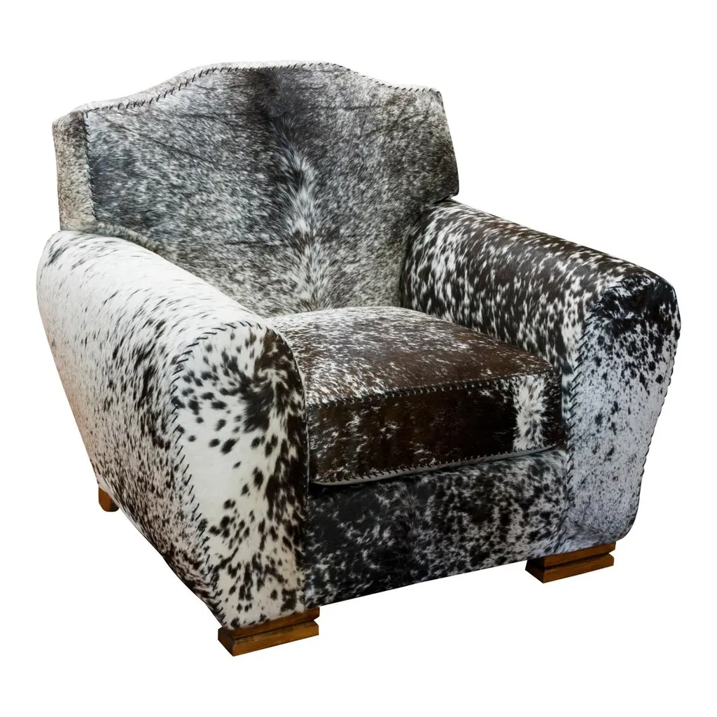 Kennedy collection black speckled great room chair with brown spot on back, of long-Horn hide with matching ottoman, seams buck stitched. Can choose customizable designs with leathers, wood and hides. Made to order so please allow time for production and shipping.Period: ContemporaryOrigin: Cisco'sSize: 40" x 40" x 48"Family Owned & OperatedCisco’s Gallery deals in the rare, exceptional, and one-of-a-kind pieces that define the history of America and the Old West. Our pieces range from American Indian to Cowboy Western and include original items of everyday life, commerce, art, and warfare that tamed America’s frontier. Our 14,000 square foot gallery opened in 1996 in beautiful Coeur d’Alene, Idaho.Personal ServiceCisco’s operates on old fashioned values – honesty and integrity, and all of our items are backed by our money back guarantee. We appreciate the opportunity to earn your business. Whether you desire assistance with a jewelry purchase, choosing a gift, identification, or even selling – we hope to be your trusted source. Leather, Hide, Cow, Ranch, Furniture, Lodge, Chair, Speckled, Black and White