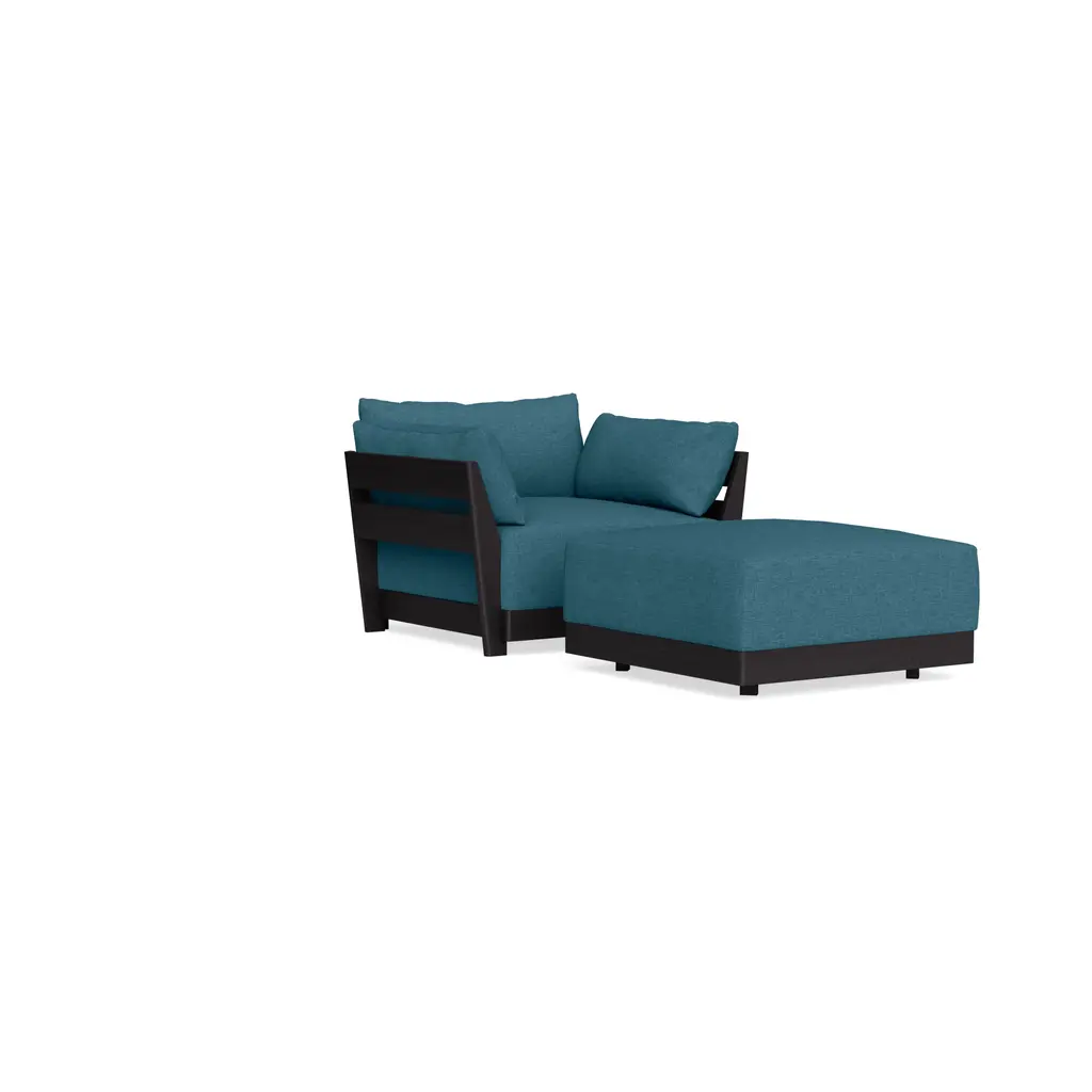 Modular Bondi Black Armchair + Ottoman In Aegean Blue | Classic Blend