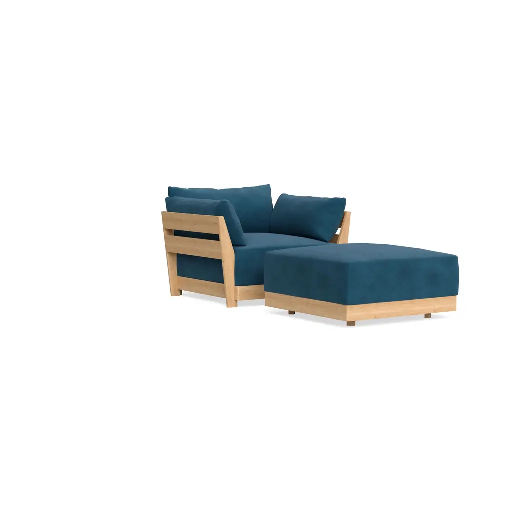 Modular Bondi Latte Armchair + Ottoman In Commodore Blue | Classic Blend