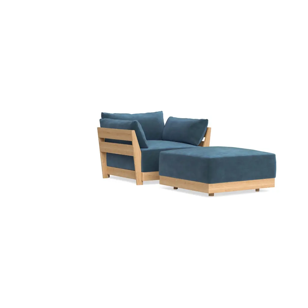 Modular Bondi Latte Armchair + Ottoman In Oxford Blue | Memory Foam Blend