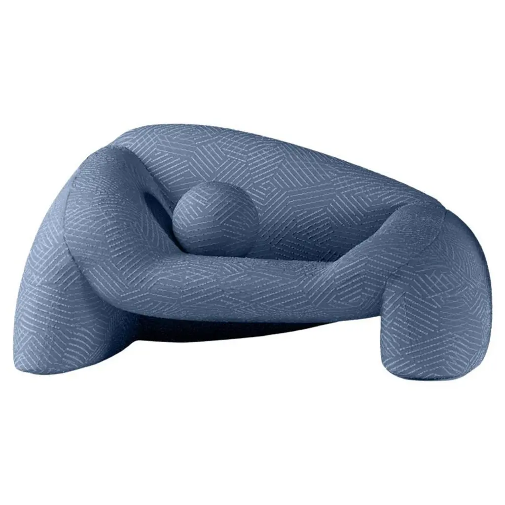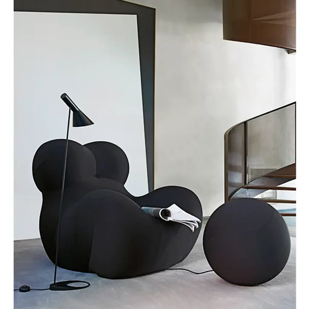 Expressive shapes upholstered in elastic fabric make the UP Armchair and Ottoman from B&B Italia one of the most outstanding examples of design. Positioned midway between design and art, this armchair has become one of the most iconic pieces in the history of design. It was designed by Gaetano Pesce in 1969 and re-launched in 2000, winning the distinguished Compasso d’Oro - Product Career Award in 2022. The shape of a womb inspired the piece’s look, invoking ancient statues of goddesses of fertility. This motif continues with the attached ottoman, contrasting the look of comfort with a perception of female strife in the 70s, tethered by ball and chain.