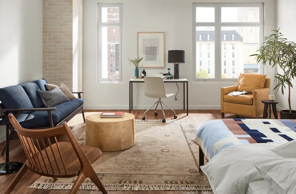 A modern club chair design with a plush, loose back cushion, the Bram chair features a bold, raised flange seam. The chair’s smaller footprint makes it incredibly versatile, while clever proportions ensure it has a roomy seat, despite its smaller scale.