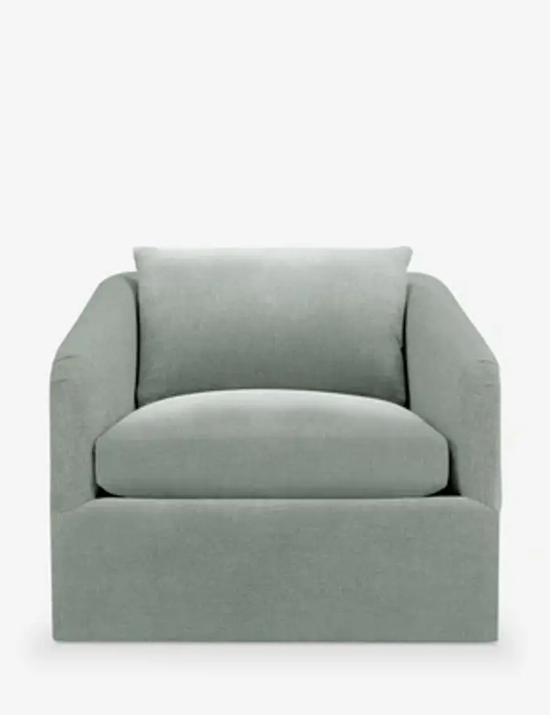 Bring a versatile accent to your bedroom or lounge with the Cleary swivel chair. The plush cushions offer a comfy seat with a transitional design you can style to your decor. With its swivel base, this dynamic chair is perfect for a conversational lounge or corner reading nook.