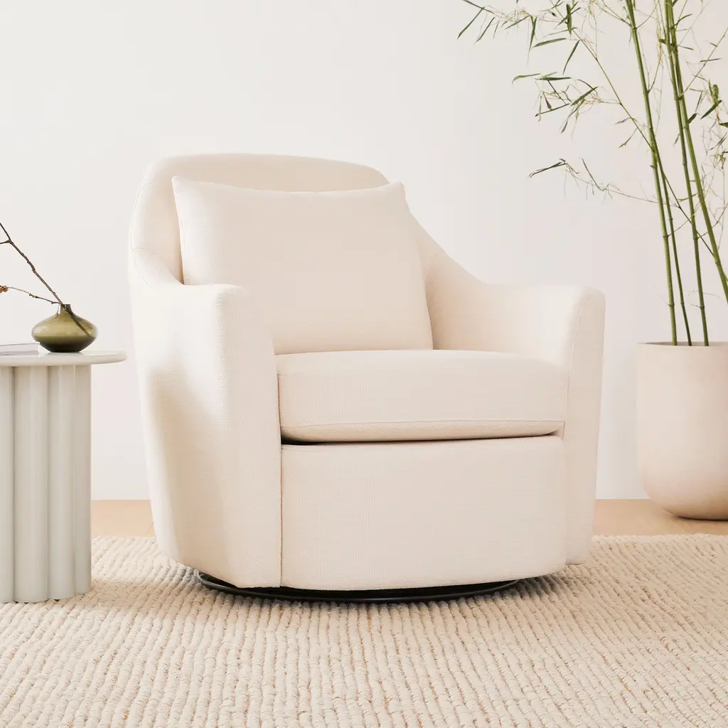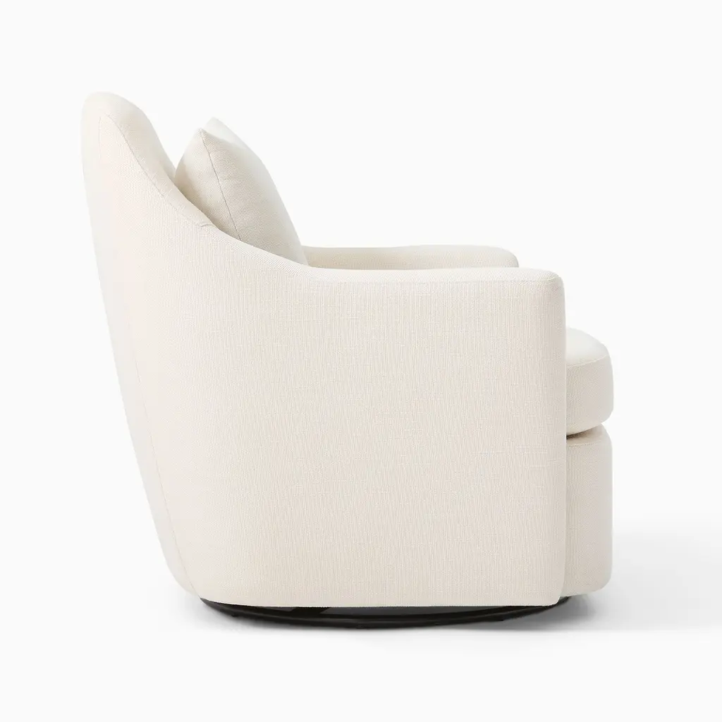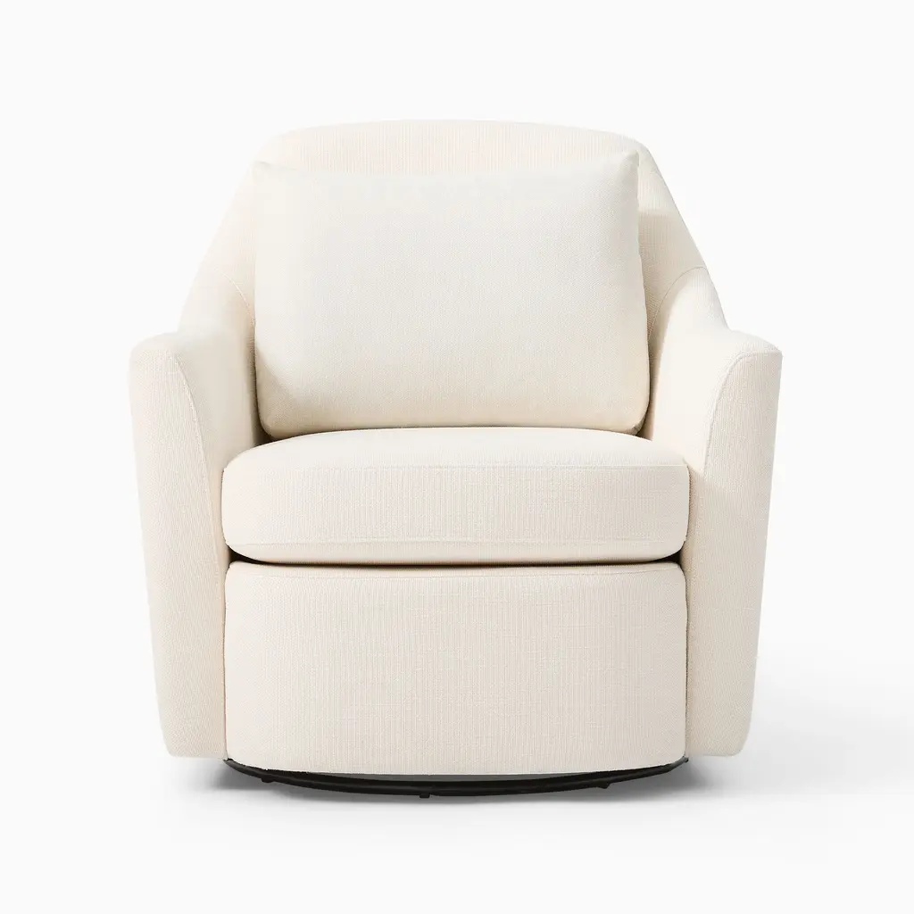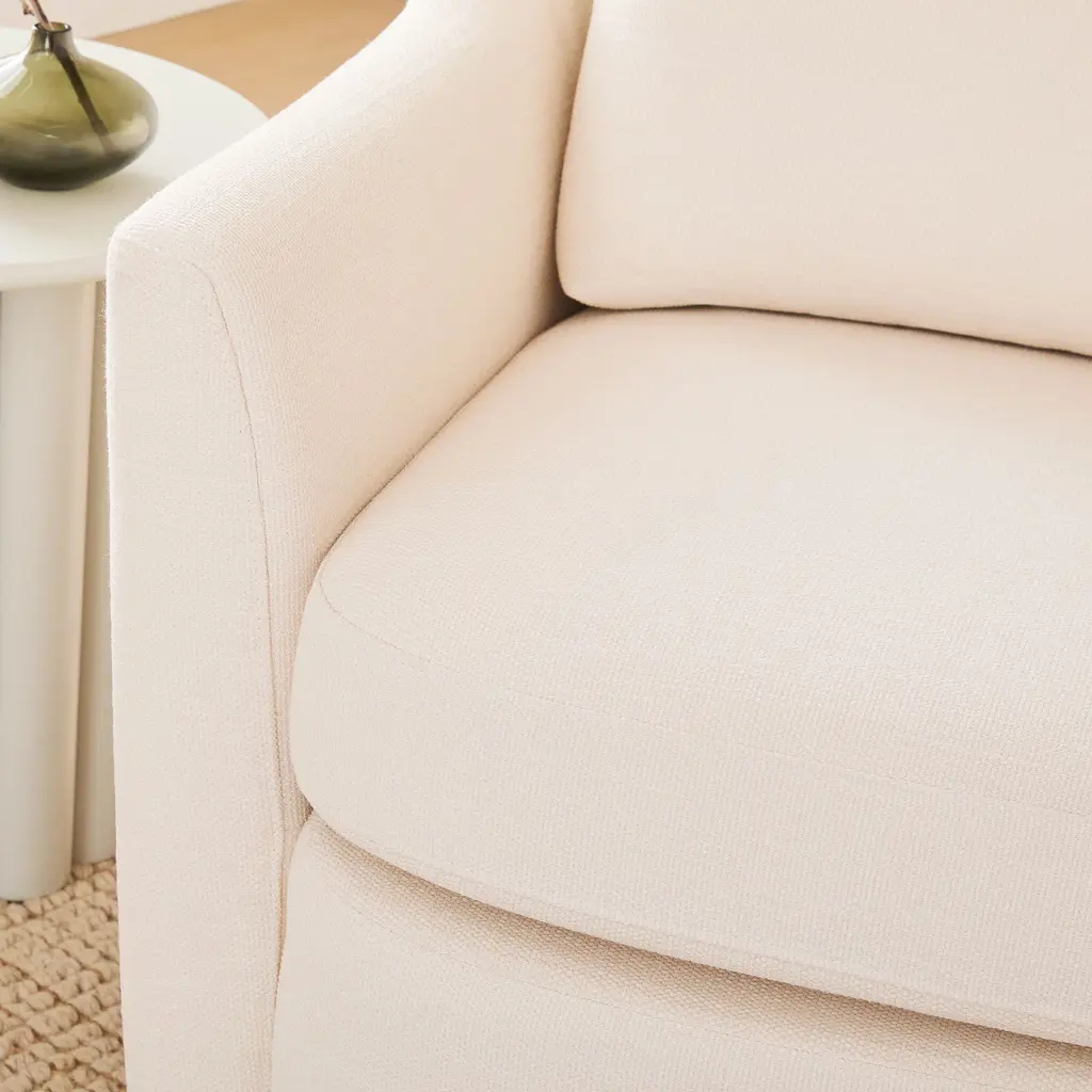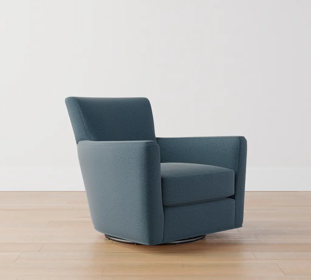 Slightly winged arms make a stylish statement. Plush, thick cushions for supreme comfort. Set on a swivel base, so it's extra functional. Contract Grade for unmatched durability.