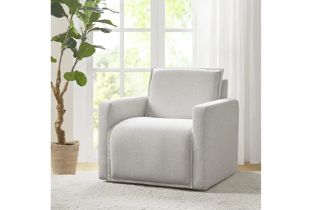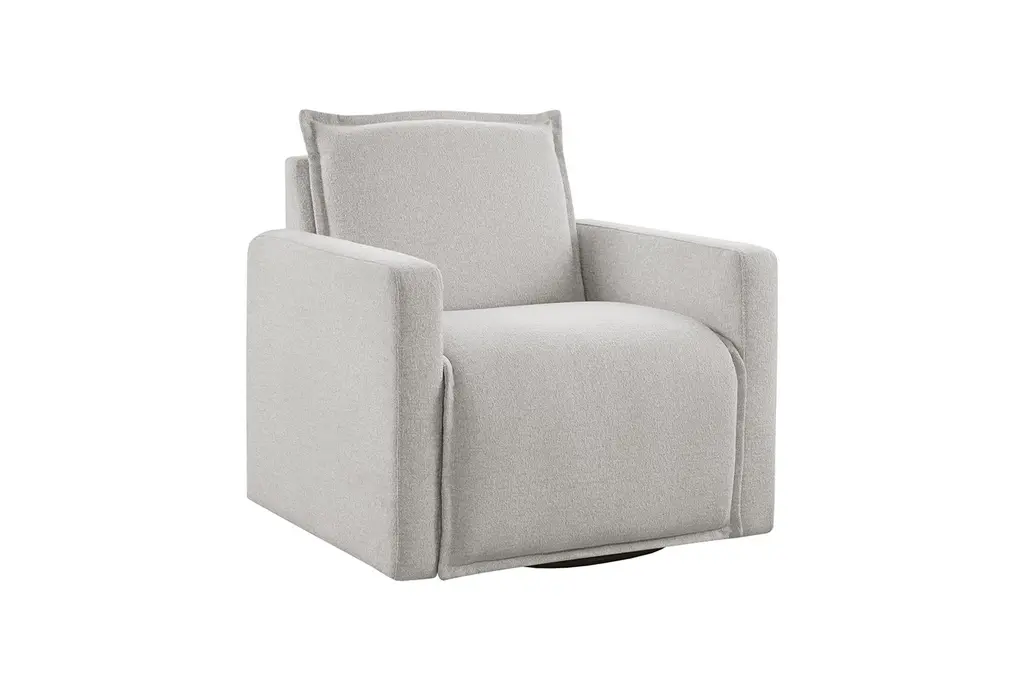 Kubrick Ivory White Fabric Swivel Arm Chair