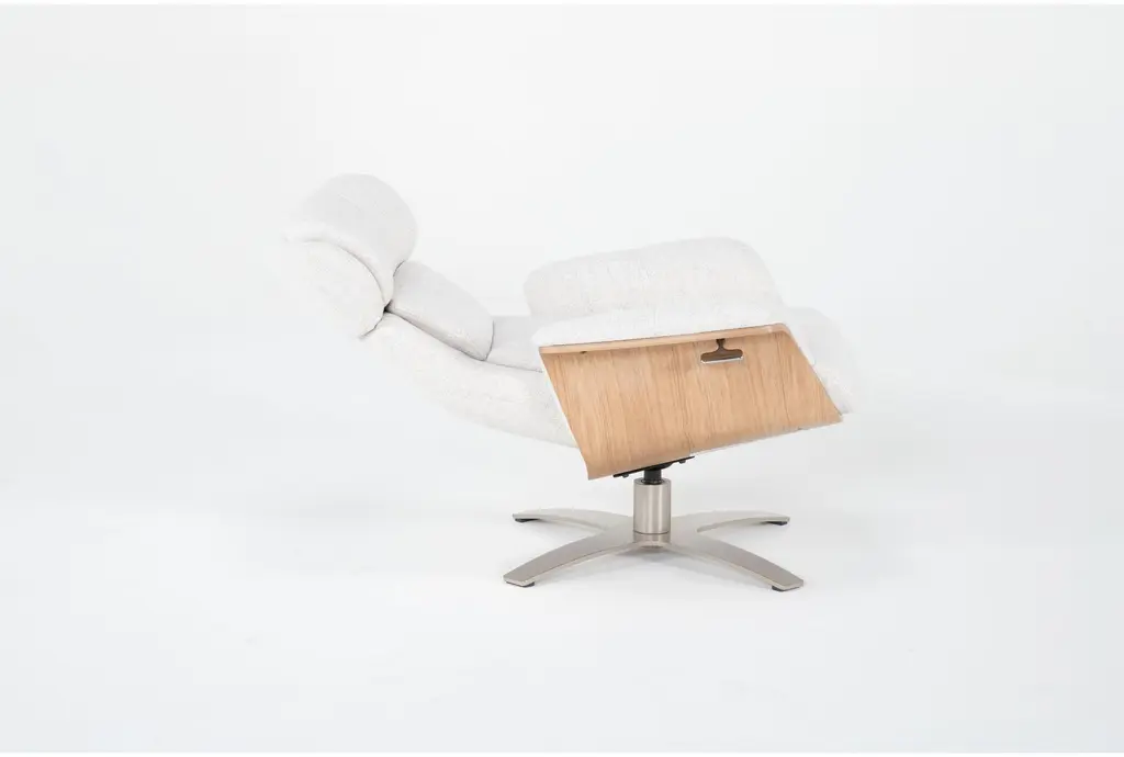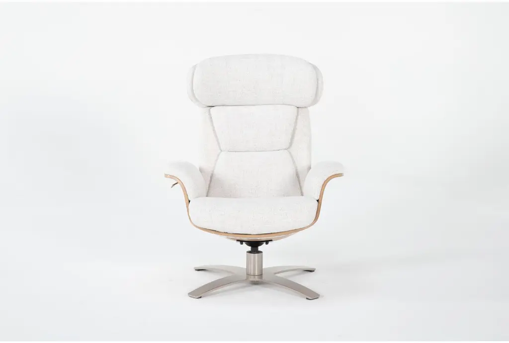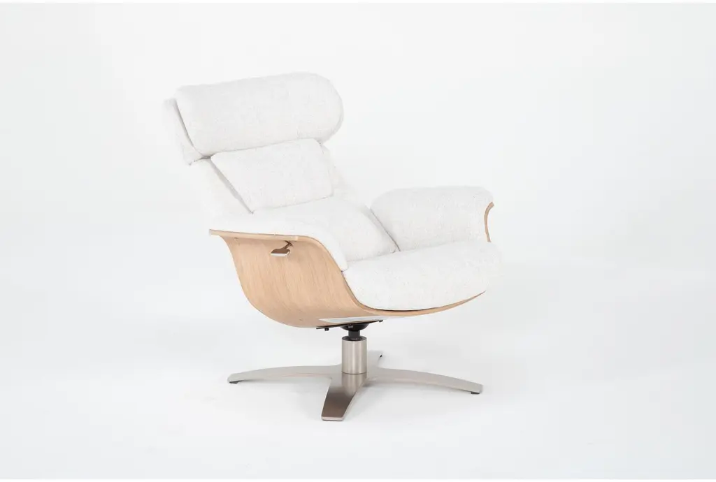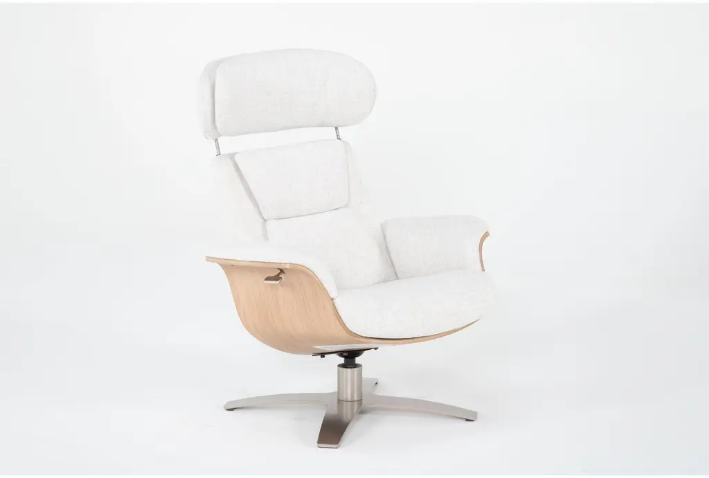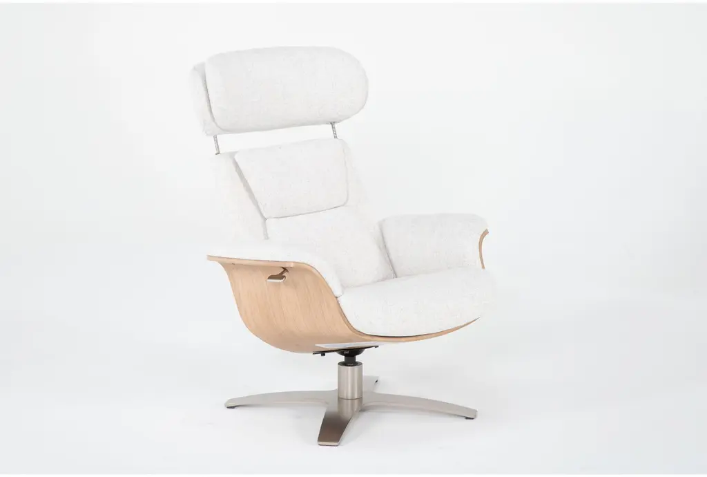 Solana White Fabric Wheat Reclining Swivel Arm Chair With Adjustable Headrest | Adjustable Headrests