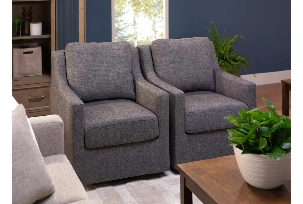 The Stark Dark Grey Fabric Swivel Arm Chair is perfect for adding a touch of contemporary style to your living room. With its firm comfort level and versatile swivel feature, this chair offers both functionality and comfort. The dark grey fabric complements a variety of decor styles, making it an ideal accent piece.