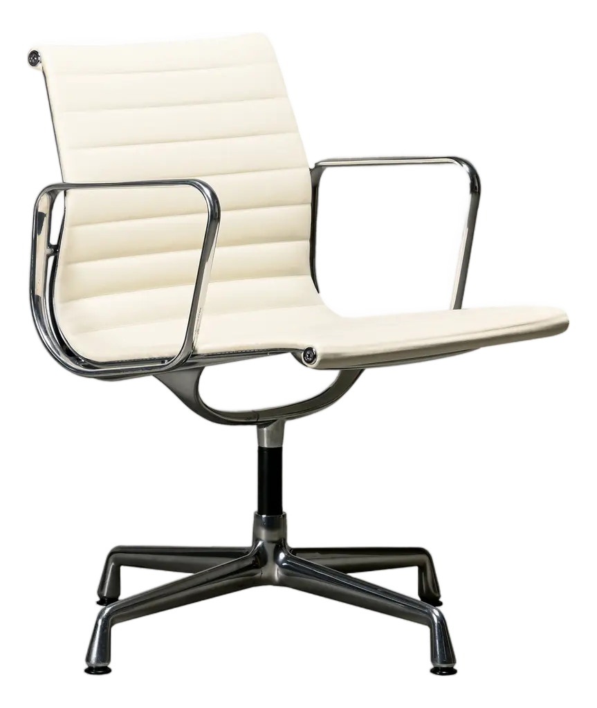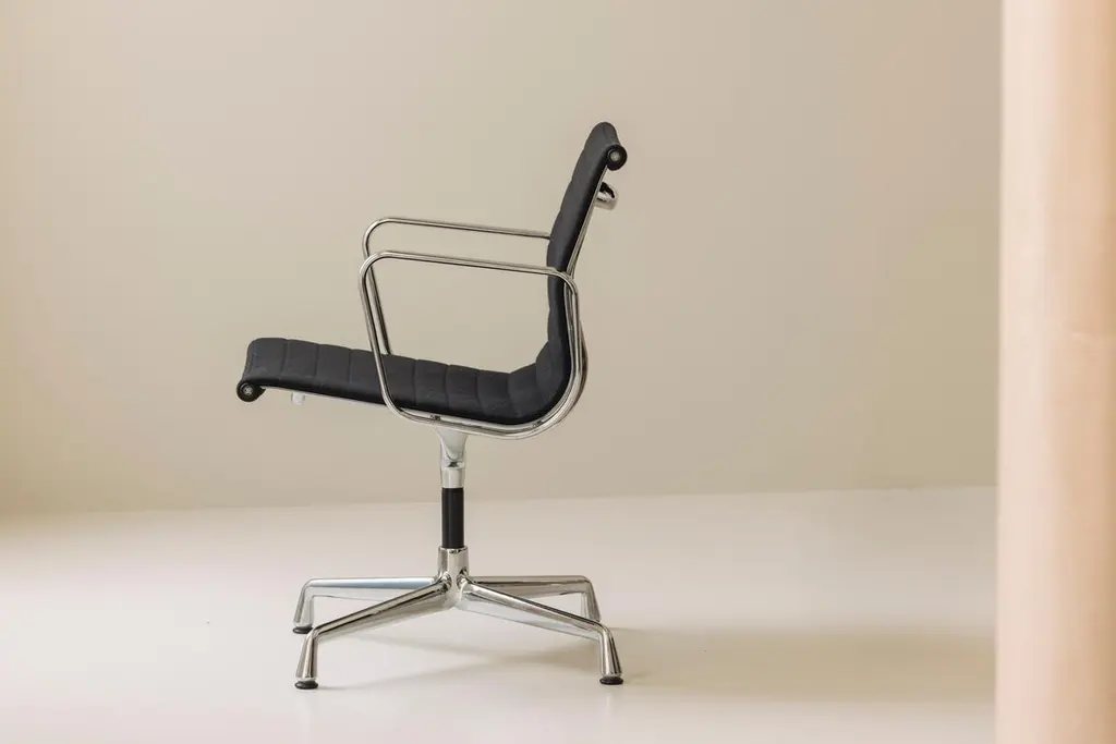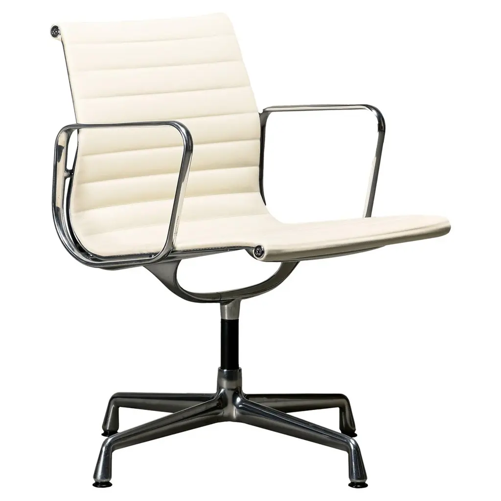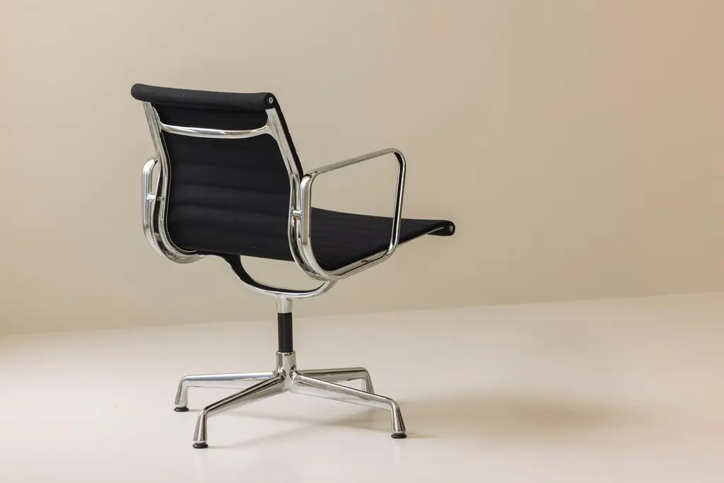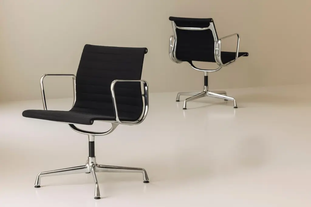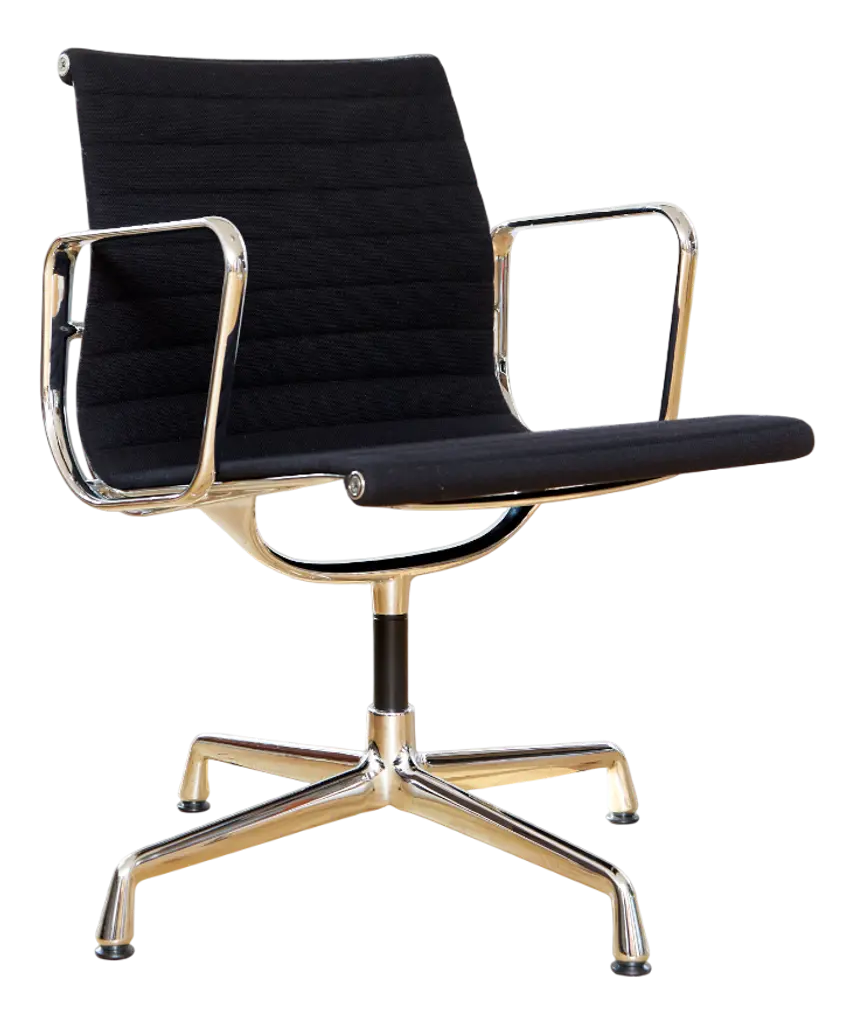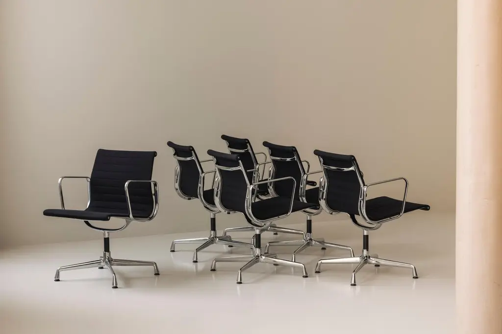 An iconic design by Charles & Ray Eames, this set of six EA108 swivel office armchairs embodies the timeless elegance and ergonomic innovation that have made the Aluminium Group series a modern classic. Produced by Vitra, these vintage examples feature the original Hopsak upholstery—known for its vibrant texture and durability—paired with sleek aluminium frames and four-star swivel bases. The EA108’s sculptural form offers exceptional comfort, making it equally suited to the office, conference room, or stylish home workspace. Designed in 1958, the Aluminium Group chairs have become one of the most recognisable symbols of 20th-century design, seamlessly blending form and function. This matching set is in a beautiful and original condition, marked underneath. Priced and sold per piece.