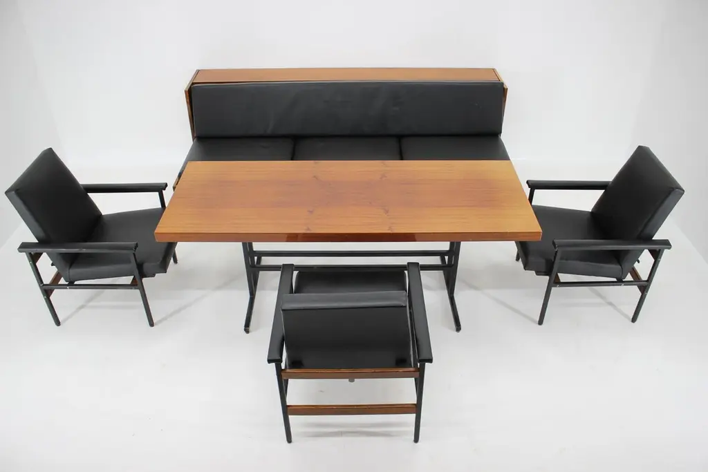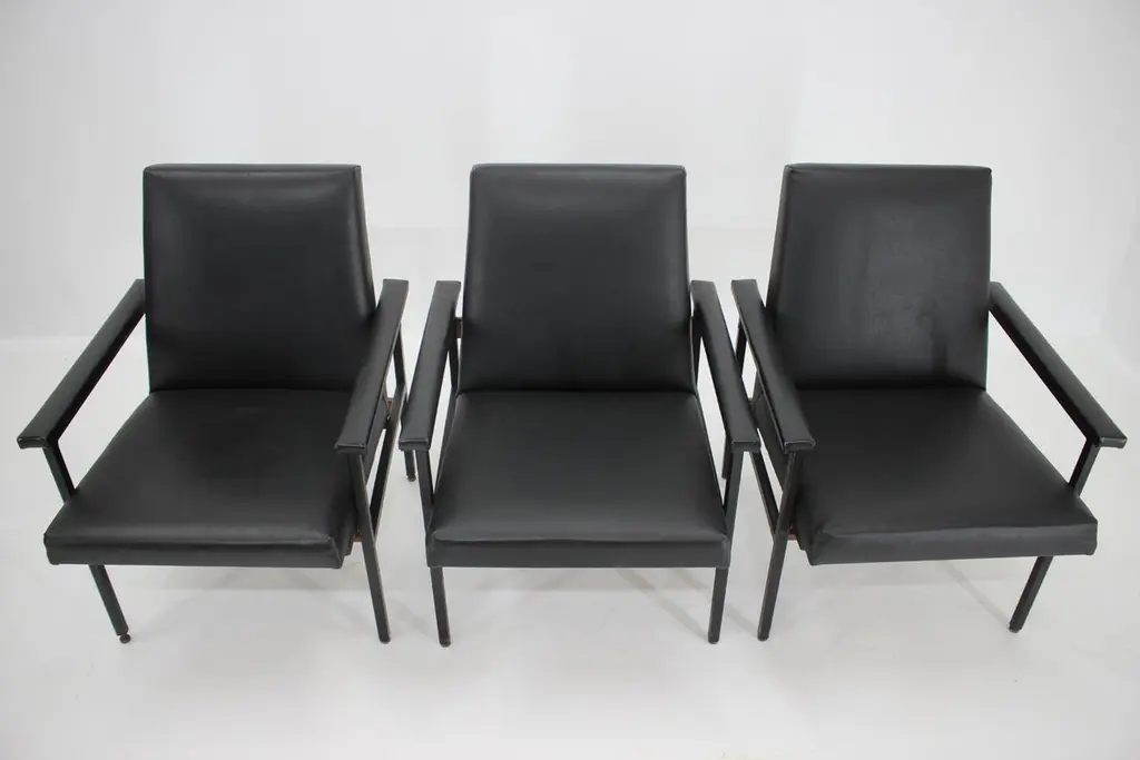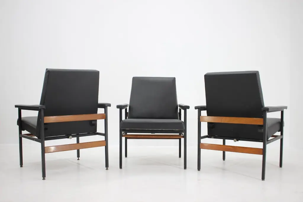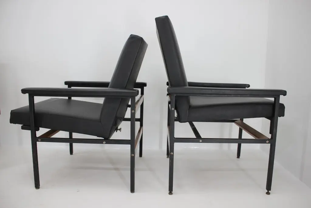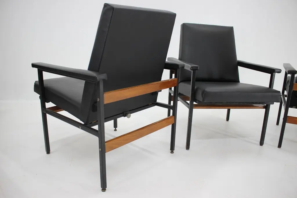 1970s Adjustable Black Leatherette Armchair, Czechoslovakia