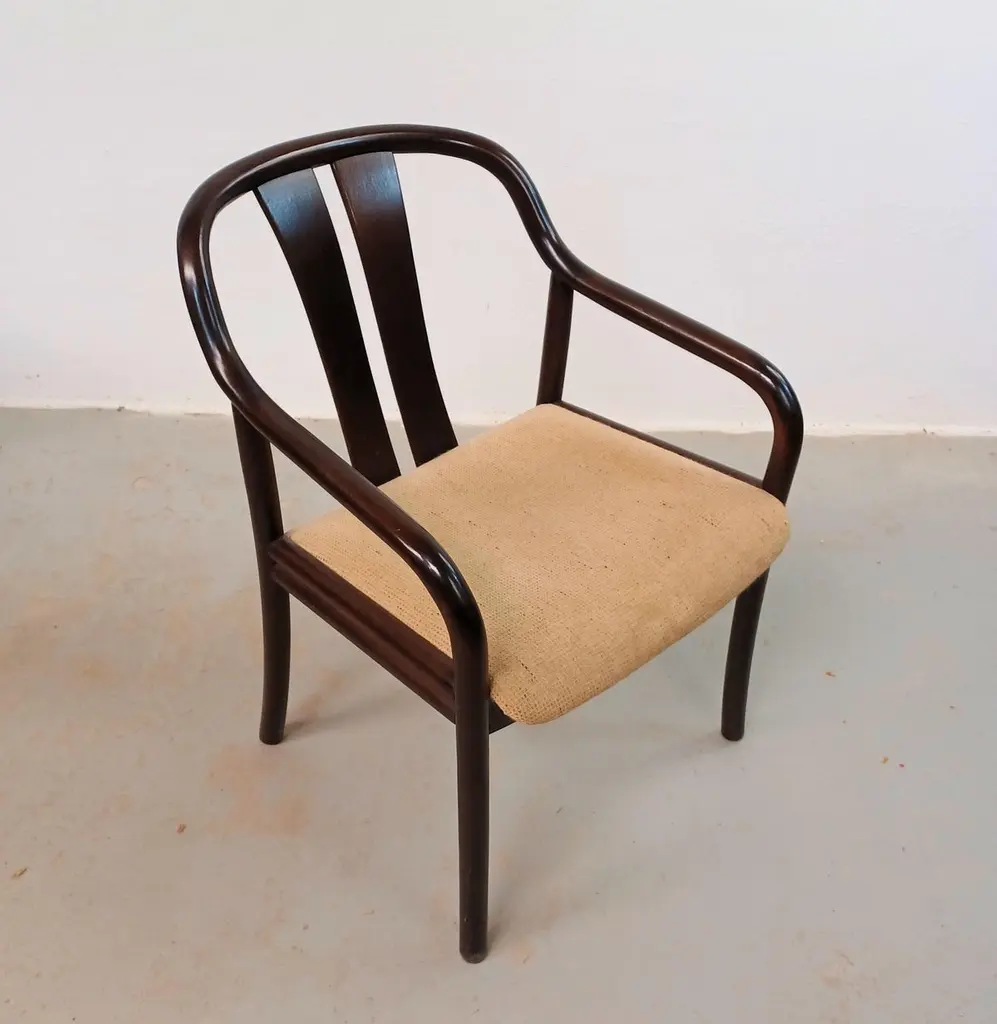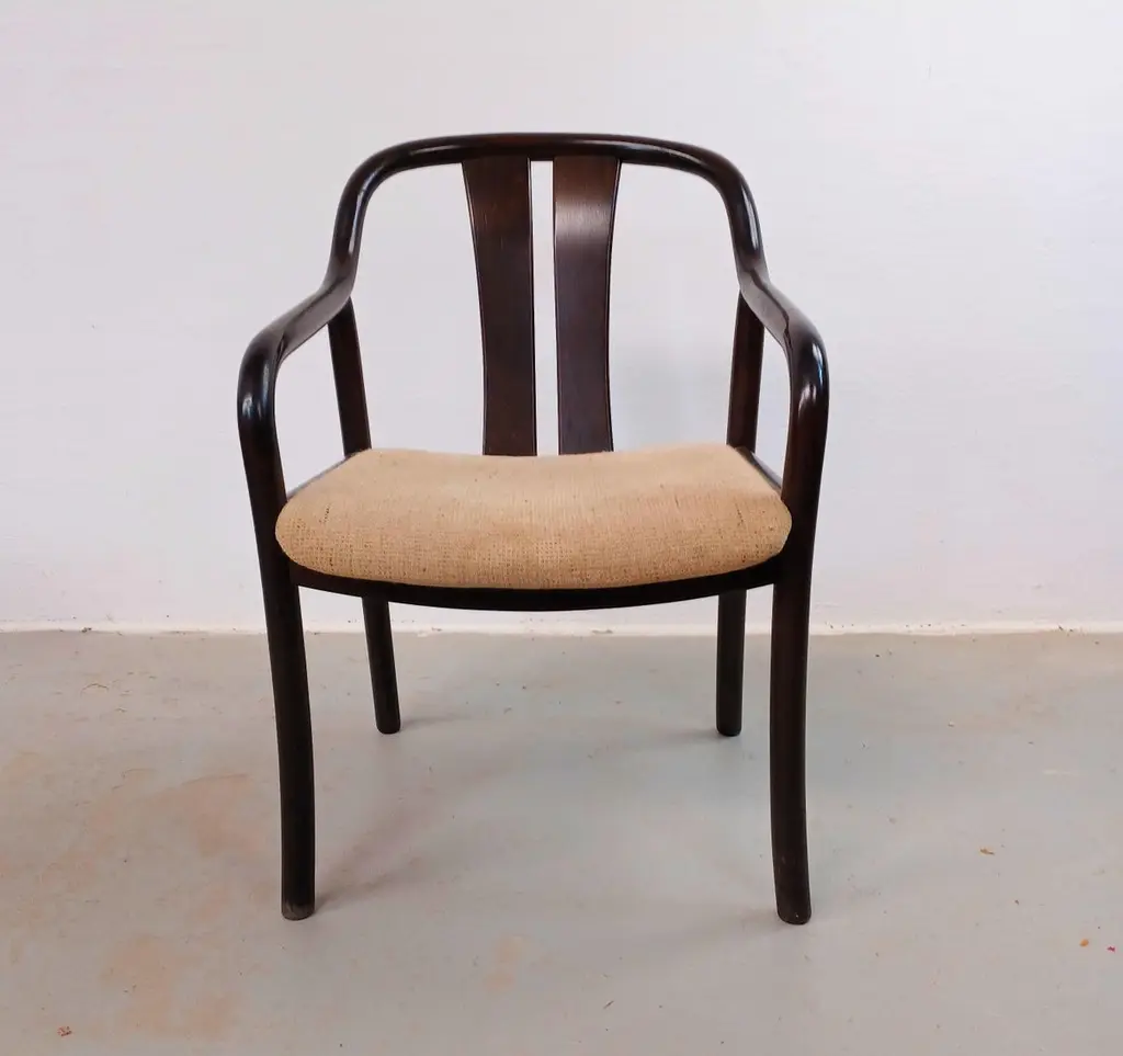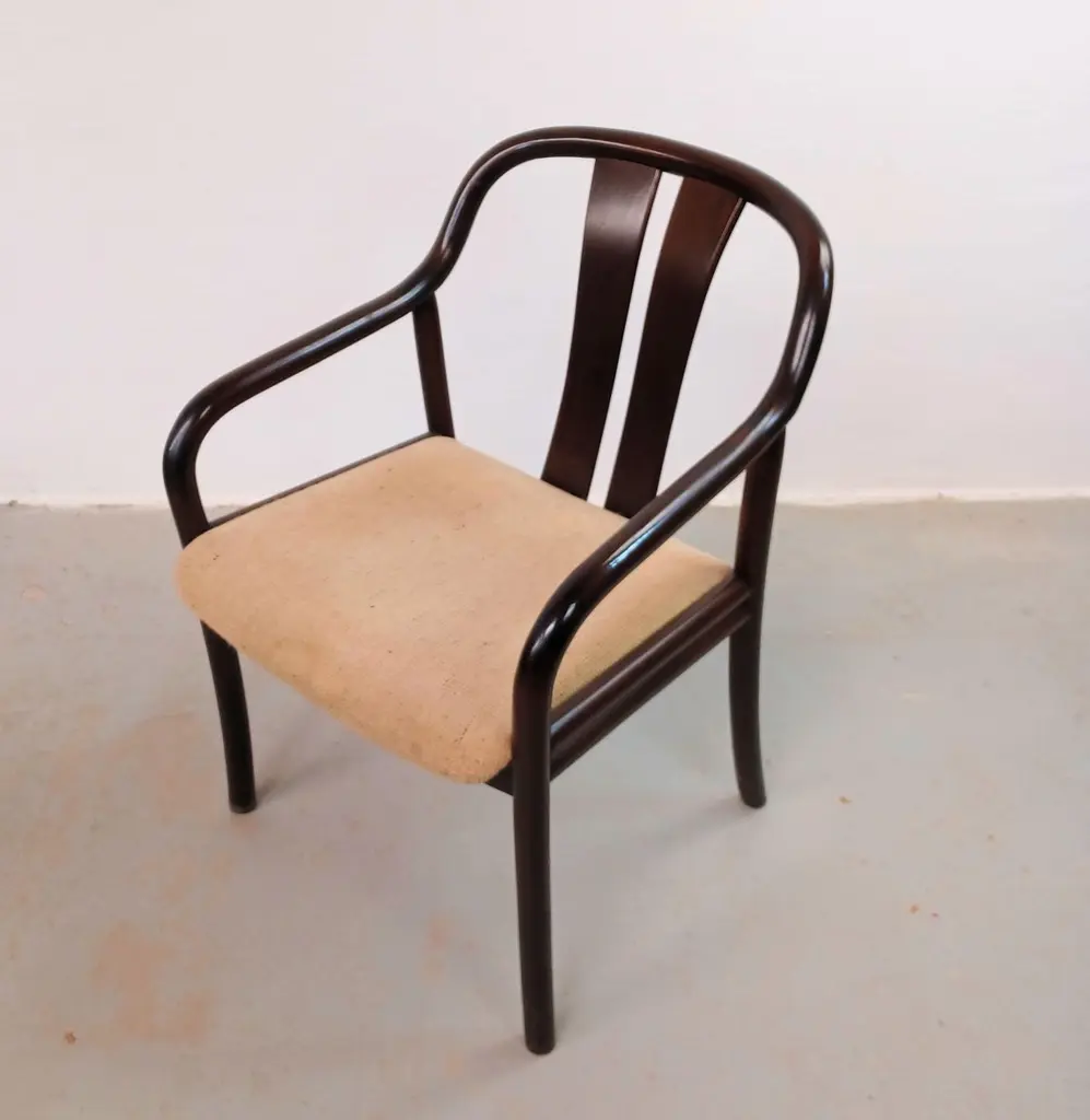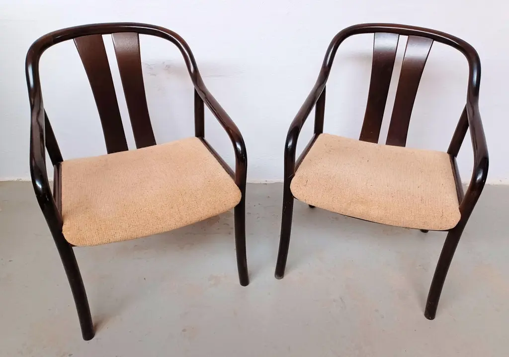 1980´s Set of Two Oswald Beck Casala Asiana Armchairs in Tanned BeechThe delicately balanced lines in the Oswald Beck design give these chairs a light and "open" appearence yet at the same time a sturdy, solid and comfortable feel inviting you to sit down. The solid wood frames are all in very good, original condition, sturdy, light and ready to use. The frames have been checked by our cabinetmakes to insure that there are no structural issues.The fabric shows wear, and will need to be replaced - feel free to ask as we have our own upholsteres who for a fair cost can reupholster in the colour and fabric you would like for.A chair that can follow you for many, many years.