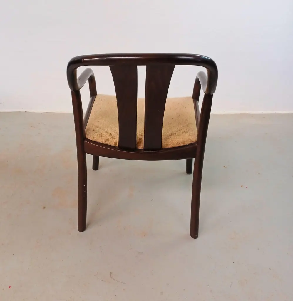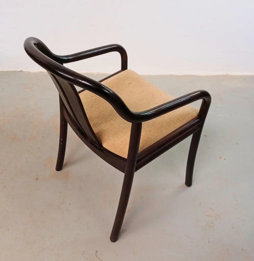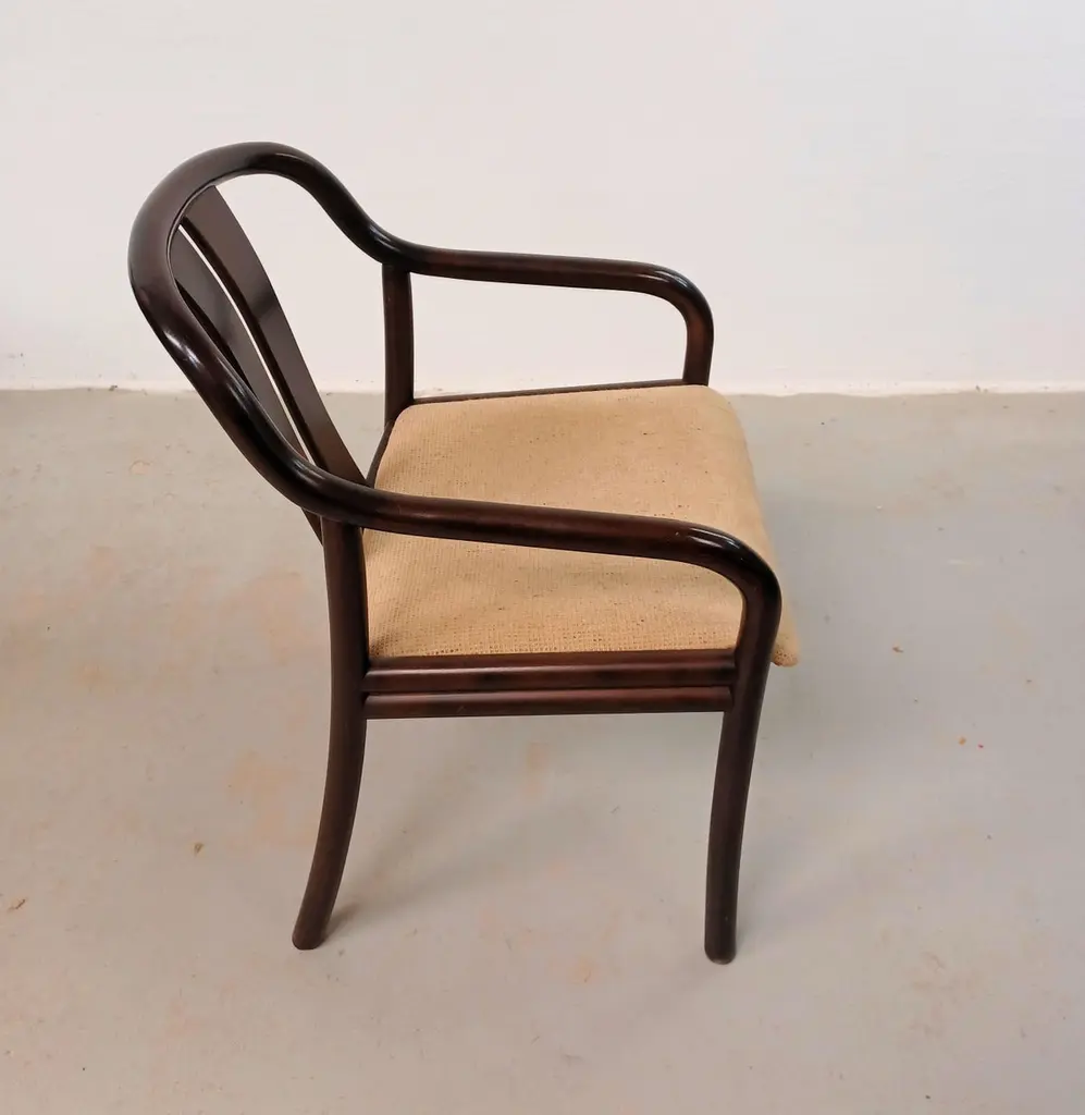 1980´s Set of Two Oswald Beck Casala Asiana Armchairs in Tanned BeechThe delicately balanced lines in the Oswald Beck design give these chairs a light and "open" appearence yet at the same time a sturdy, solid and comfortable feel inviting you to sit down. The solid wood frames are all in very good, original condition, sturdy, light and ready to use. The frames have been checked by our cabinetmakes to insure that there are no structural issues.The fabric shows wear, and will need to be replaced - feel free to ask as we have our own upholsteres who for a fair cost can reupholster in the colour and fabric you would like for.A chair that can follow you for many, many years.