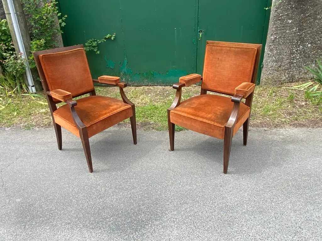 2 Art Deco Armchair In Walnut In The Style Of Andre Arbus, Circa 1940
