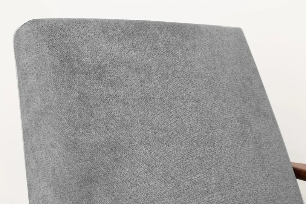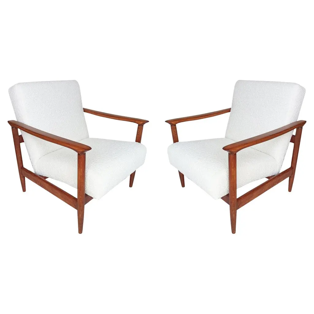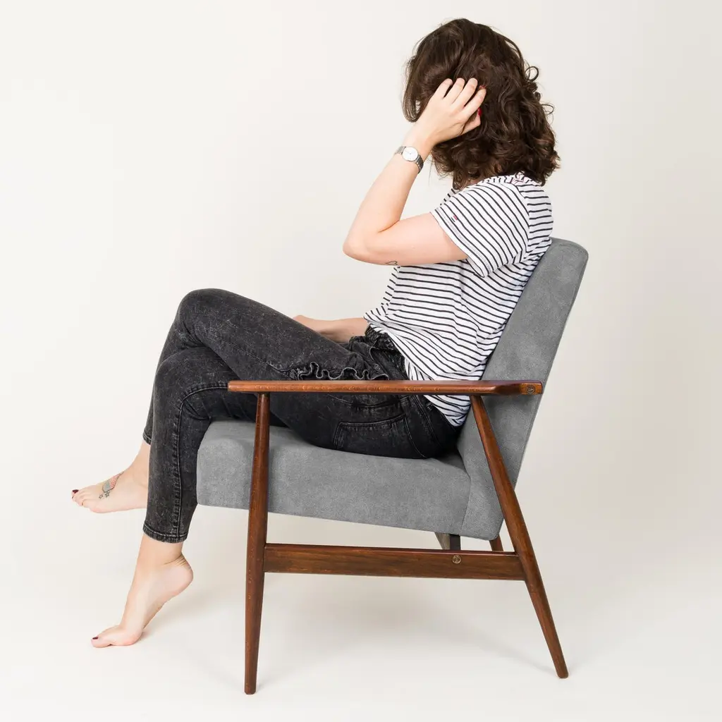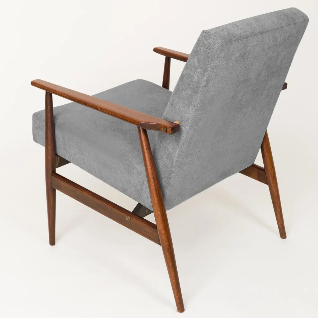 A beautiful, restored armchairs designed by Henryk Lis. Furniture after full carpentry and upholstery renovation. The fabric, which is covered with a backrest and a seat, is a high-quality velor upholstery. The armchairs will be perfect in Minimalist spaces, both private and public. We can prepare this armchairs in different color of fabric and wood.