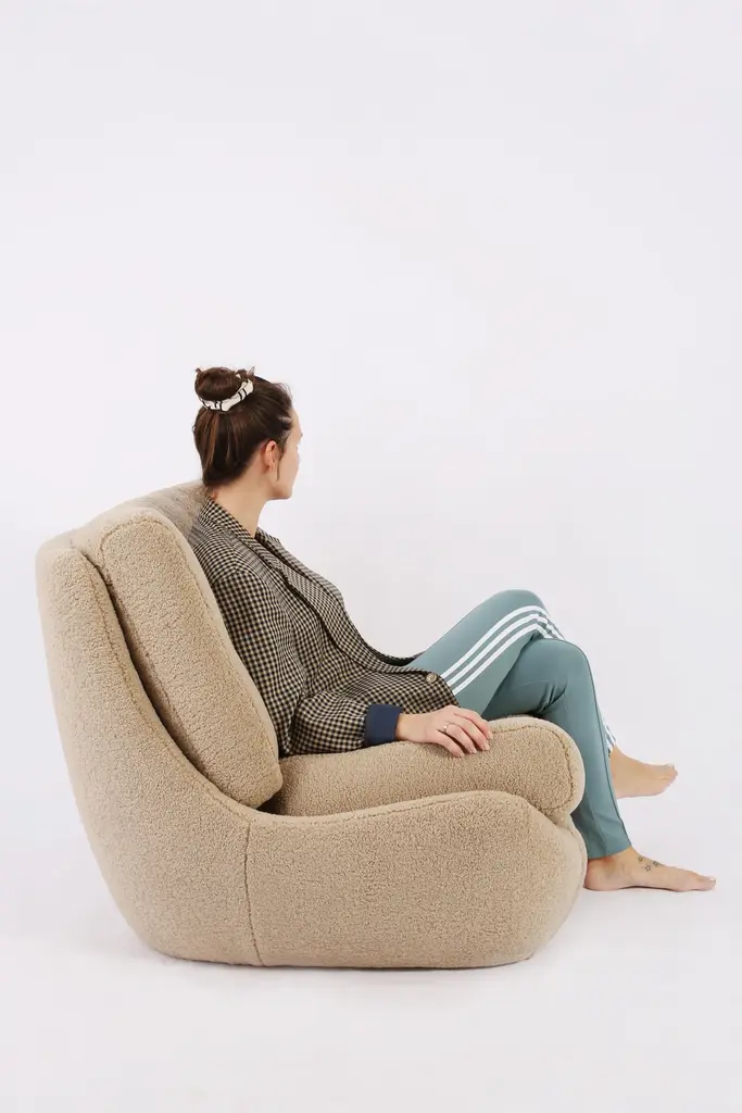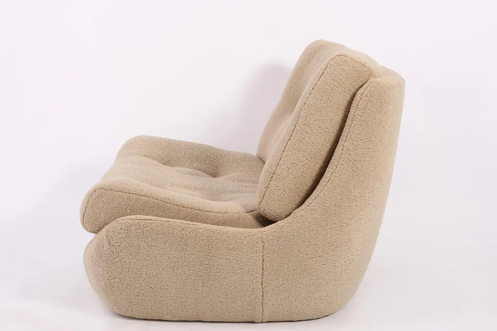Atlantis armchair from the 1960s, produced in the Silesian furniture factory in Swiebodzin at the moment they are unique. Due to their dimensions, they perfectly blend in even in small apartments providing comfort and beautiful decoration. Covered with high-quality boucle fabric, a space-saving piece of furniture. They are extremely comfortable. Our model is 1.7m height. We can prepare this armchairs in another boucle color.