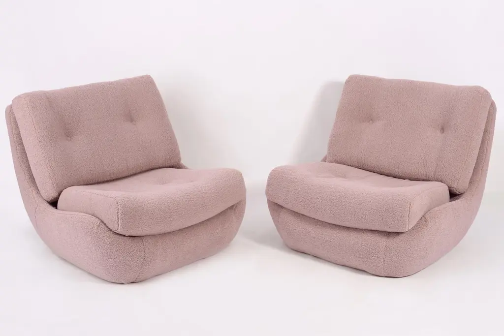 Atlantis armchair from the 1960s, produced in the Silesian furniture factory in Swiebodzin at the moment they are unique. Due to their dimensions, they perfectly blend in even in small apartments providing comfort and beautiful decoration. Covered with high-quality boucle fabric, a space-saving piece of furniture. They are extremely comfortable. We can prepare this armchairs in another boucle color.