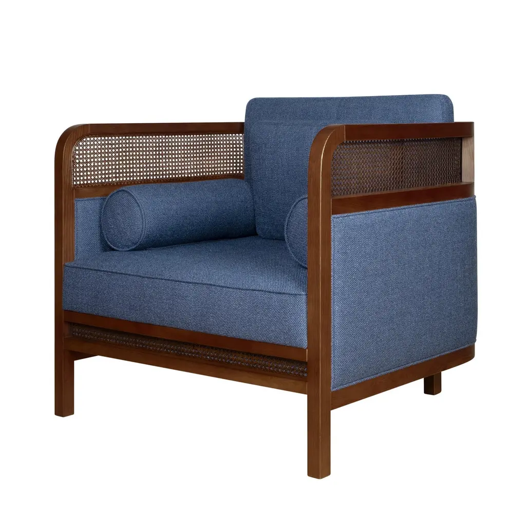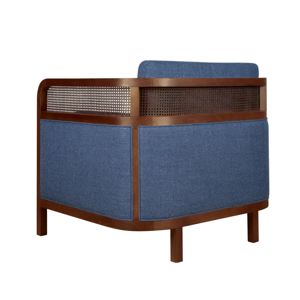 William Crockford, a Londoner son of a fishmonger, was the owner of a gambling house that caught the attention of every English celebrity back in 1827. For several years this members’ club was a place of exclusiveness and tons of money circulated there, which led to him becoming one of England’s richest men. Besides having this business, Crockford was an entrepreneur and horse racing enthusiast.Structured in walnut wood and upholstered in linen, with carefully handcrafted rattan details, the Crockford armchair honors William Crockford and his Gentlemen’s Club. To create an atmosphere of permanent elegance with a touch of grandiosity, the Crockford Armchair rattan armchair suits a room full of personality.