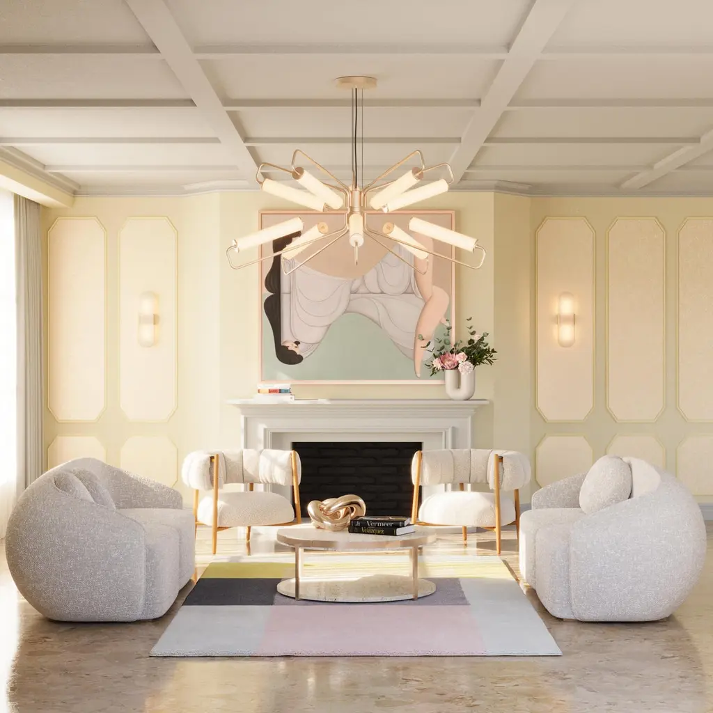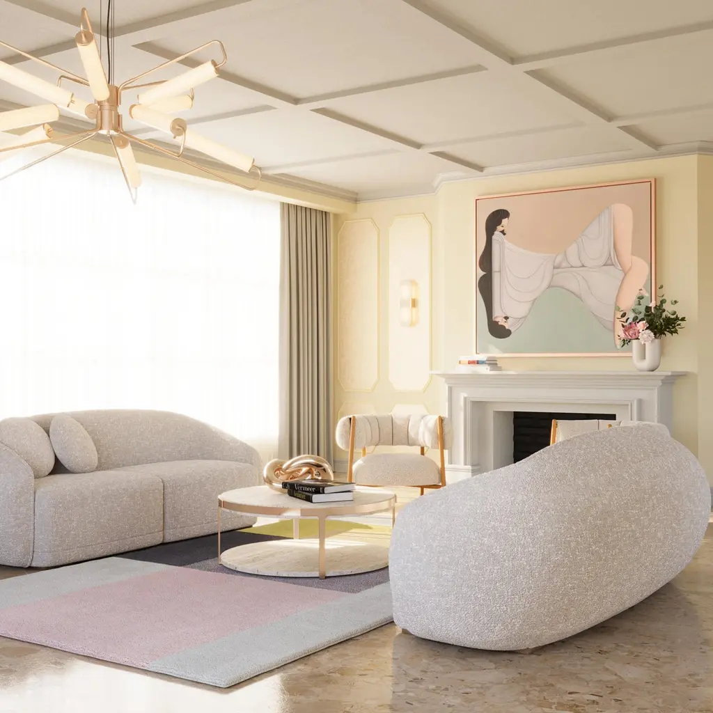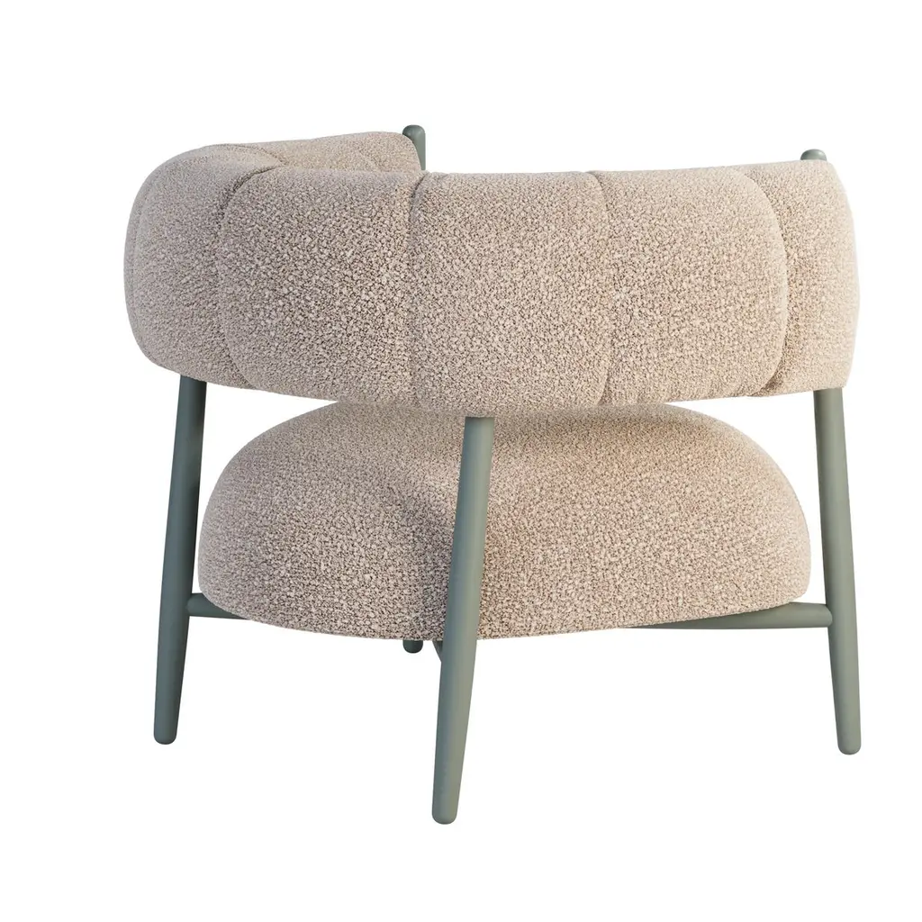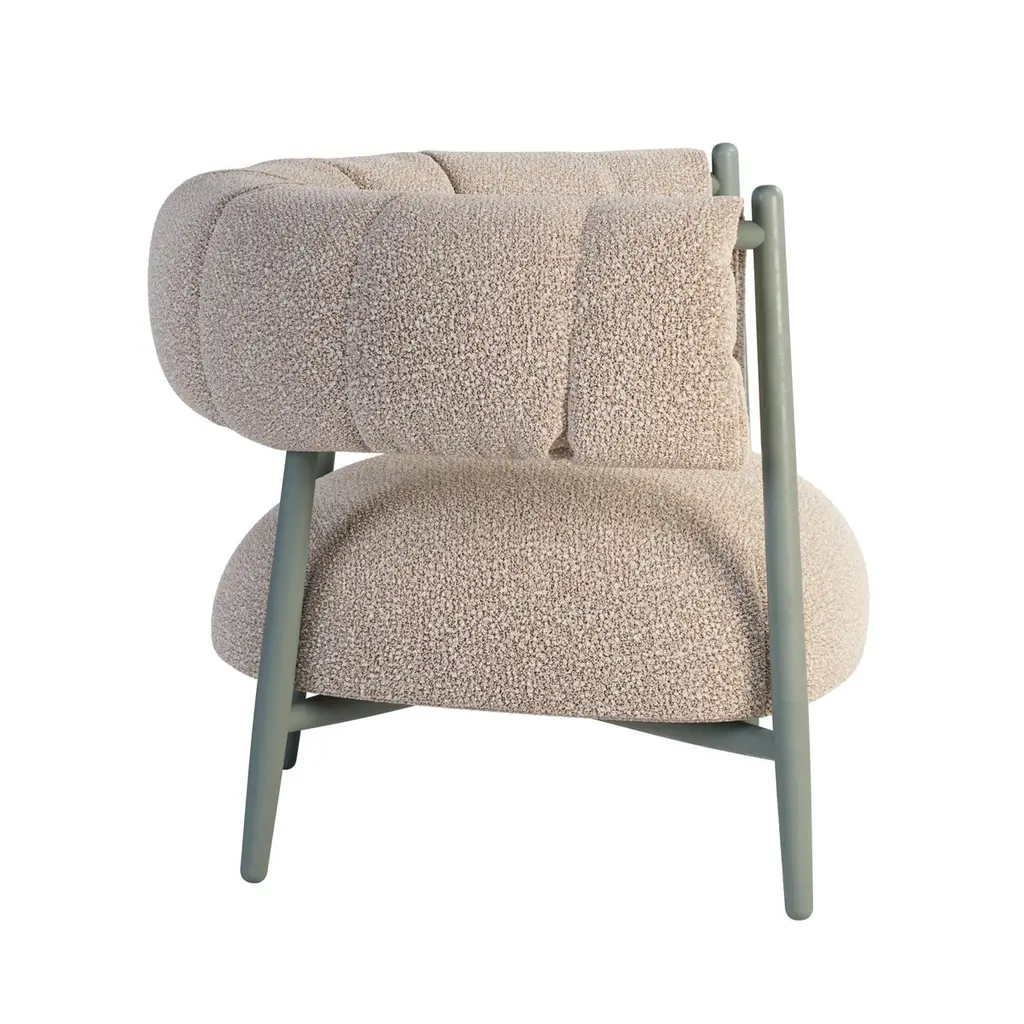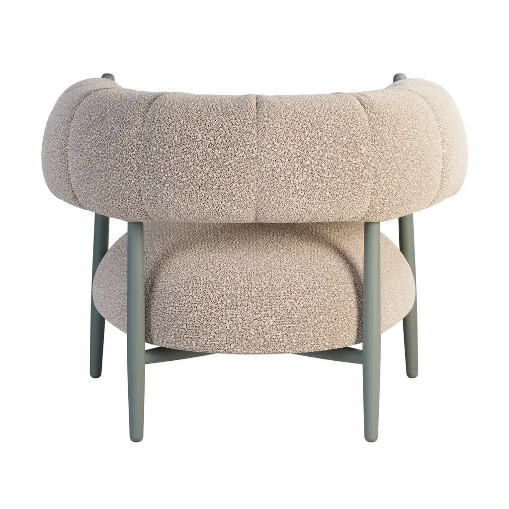 Vera-Ellen was especially known for her partnerships with Gene Kelly and Fred Astaire. Her dancing style was characterized by her light, bouncy jumps and her precise, delicate footwork.Her delicate and unique beauty inspired Ottiu to create the mid-Century Modern Ellen Armchair.The lacquered feet and the luxurious bouclé upholstery combination makes the Ellen Armchair a delicate and light piece but also exquisite. Designed for vintage and classical interiors, this armchair fits perfectly a discrete yet luxurious environment.