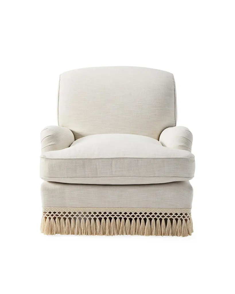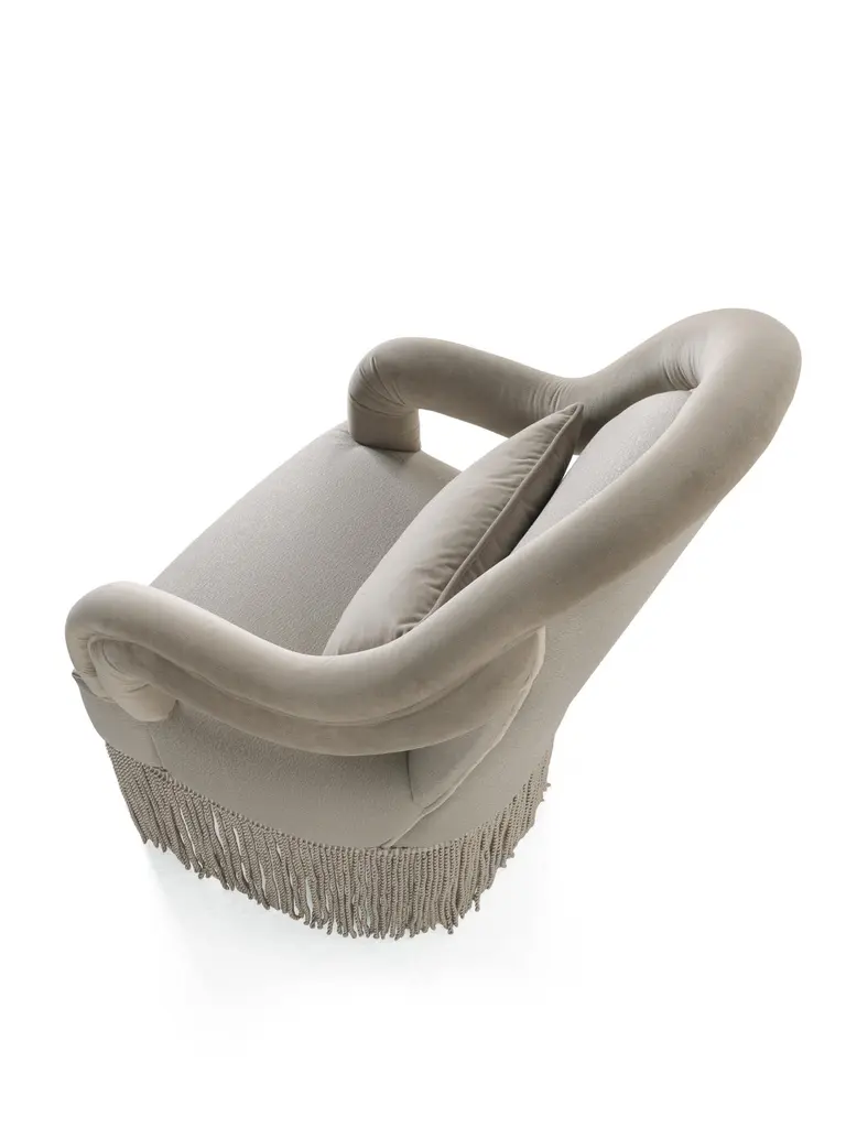 21st Century Pegaso Armchair In Fabric With Decorative Fringe