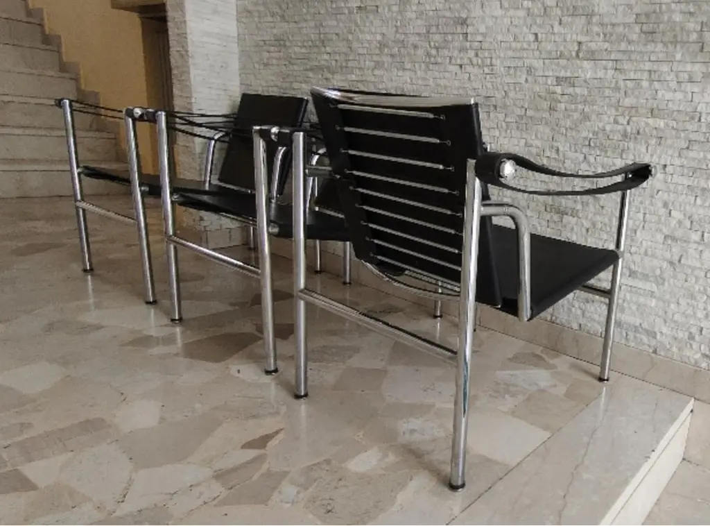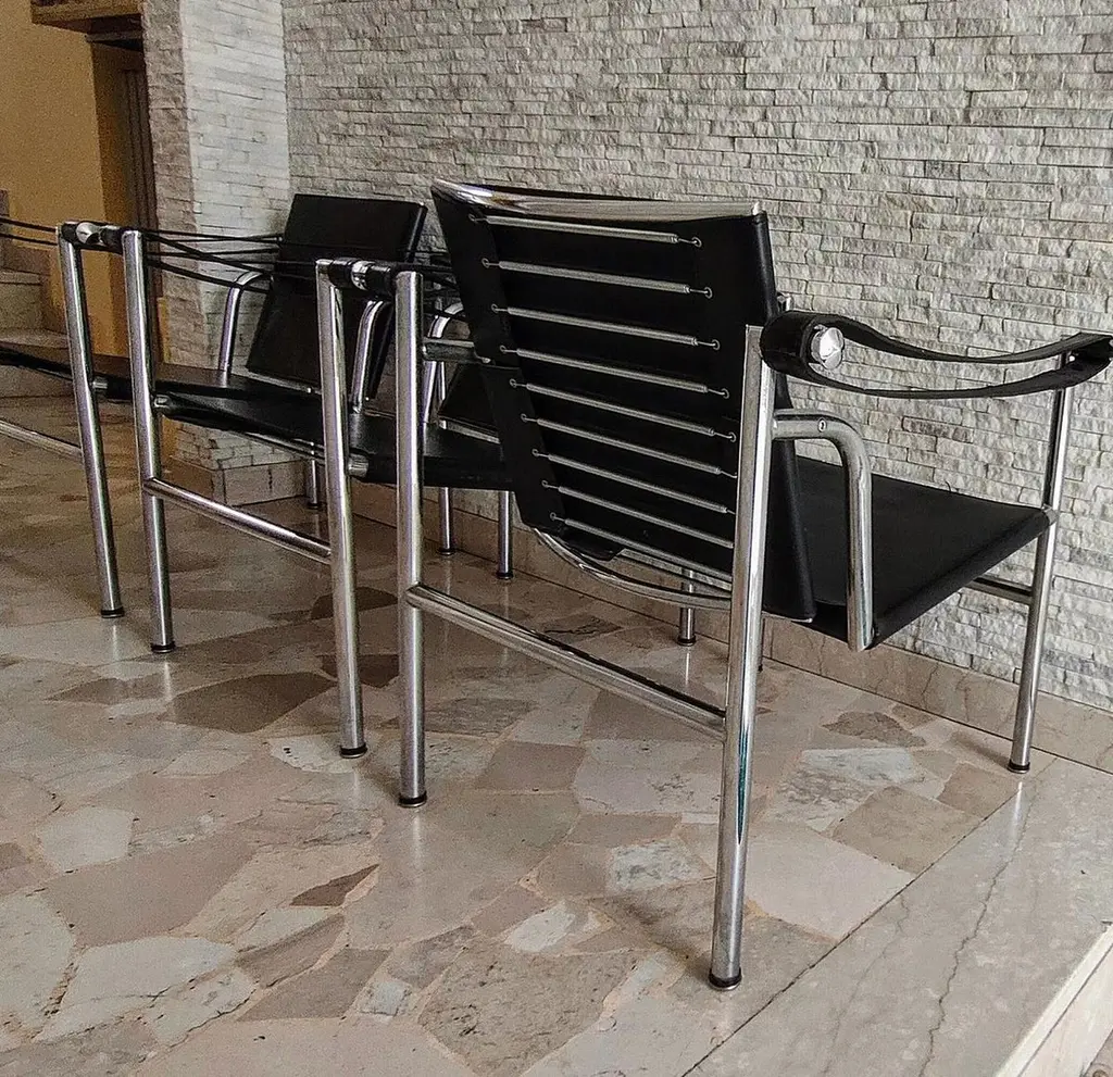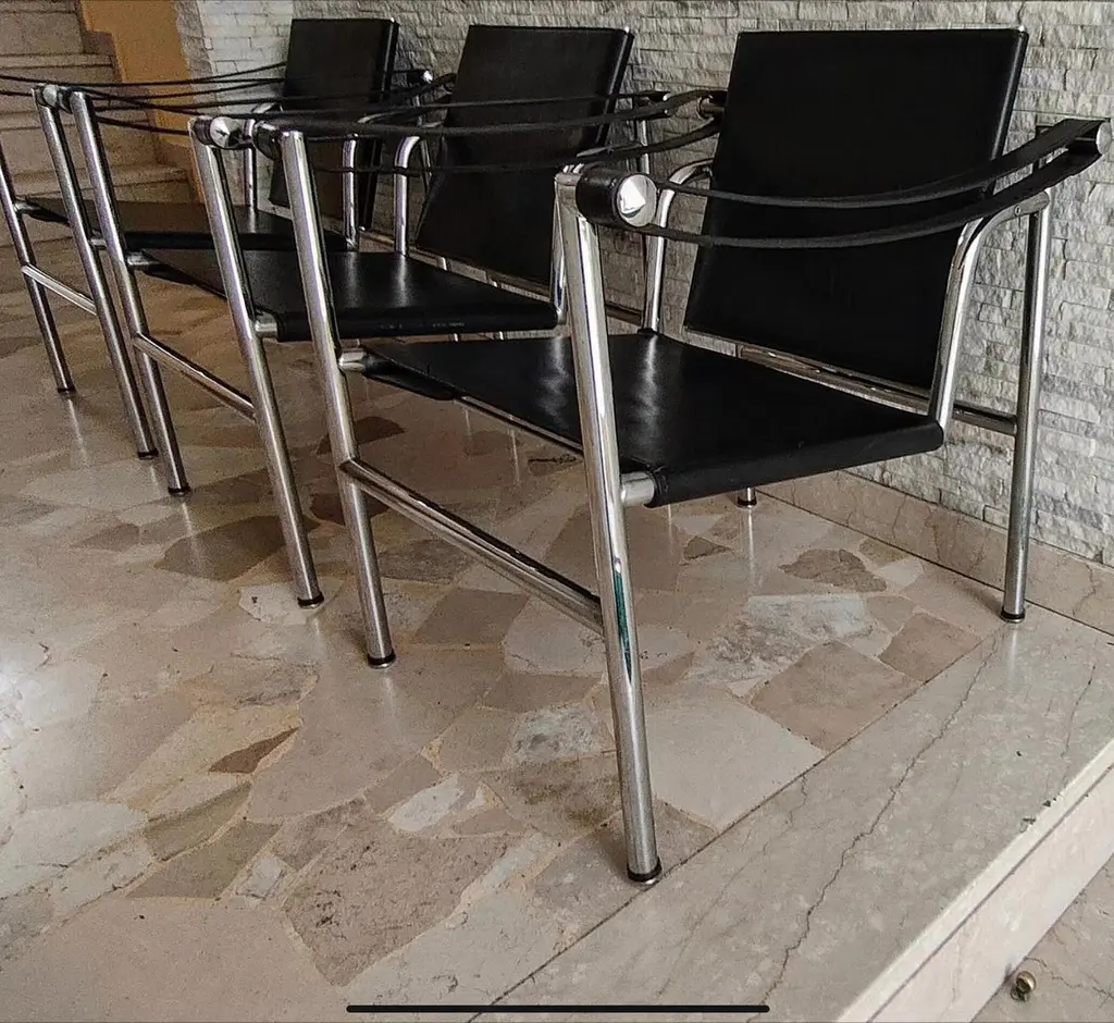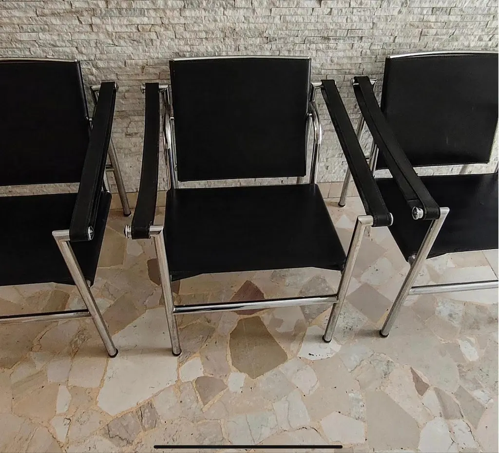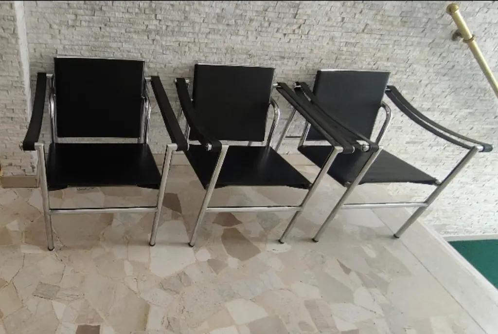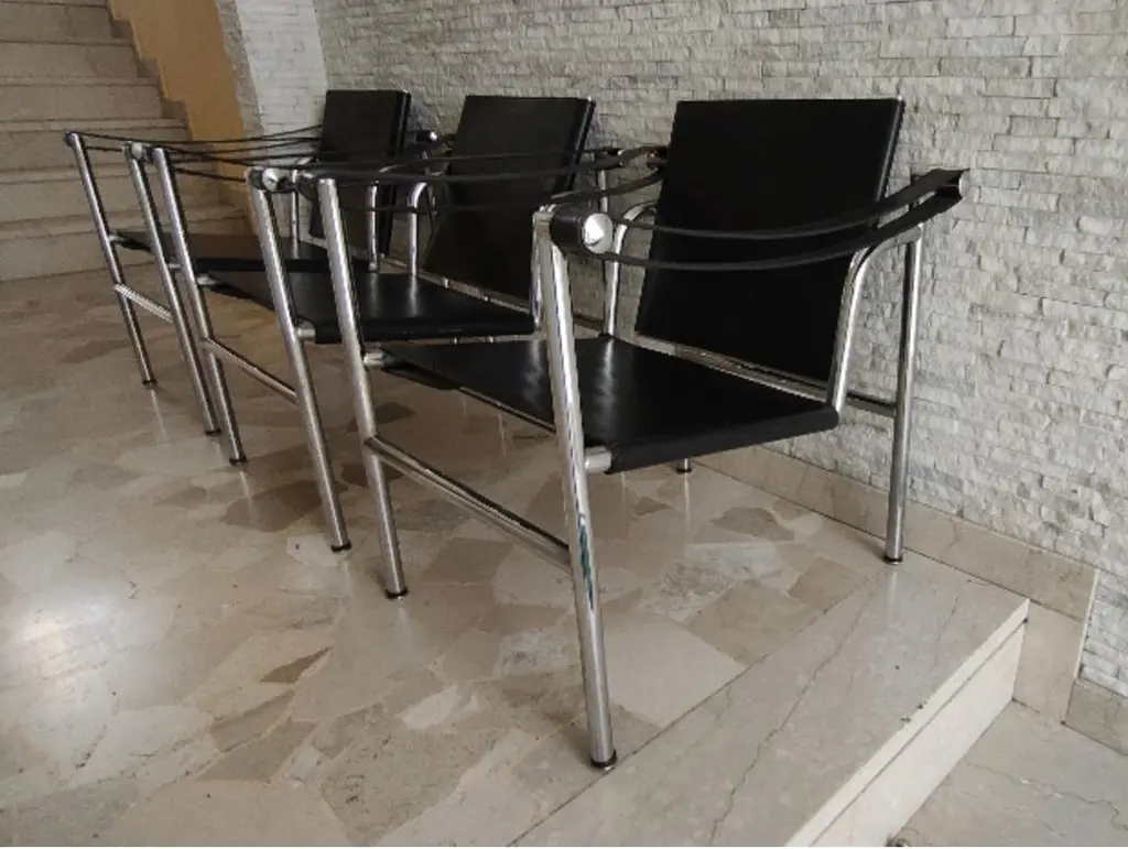 3 Armchairs Mod. Lc 1 1970s Le Corbusier - Cassina -Made In Italy