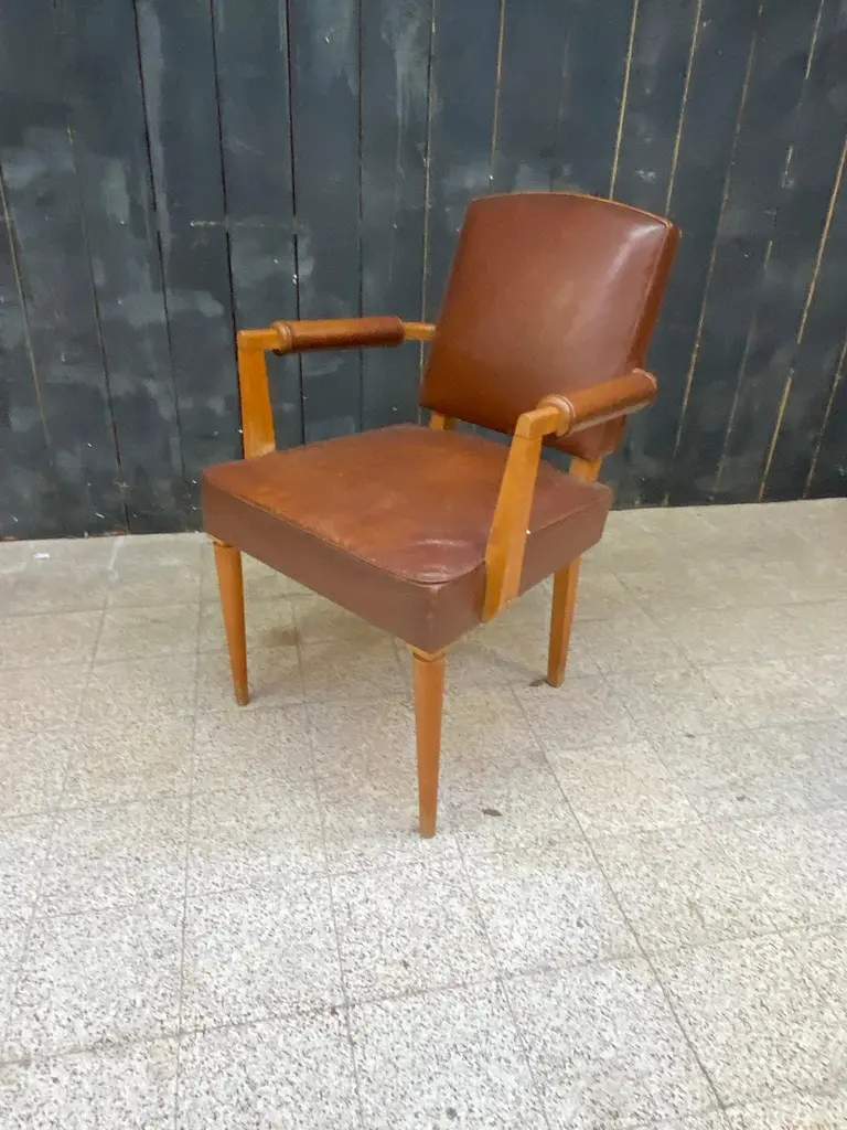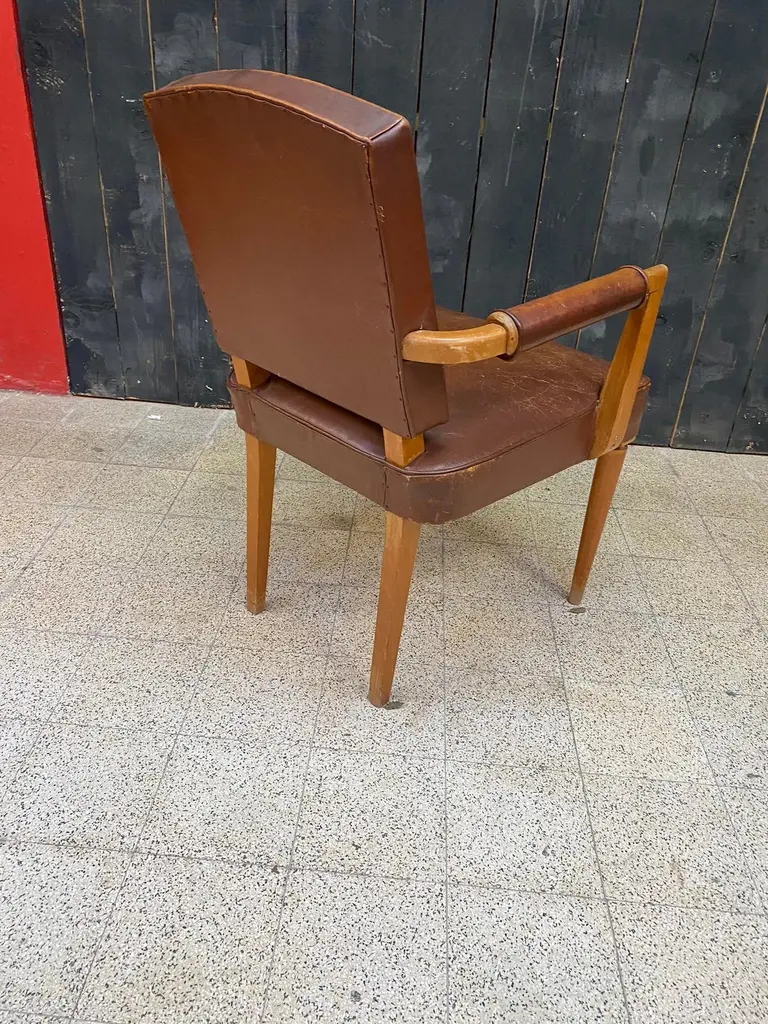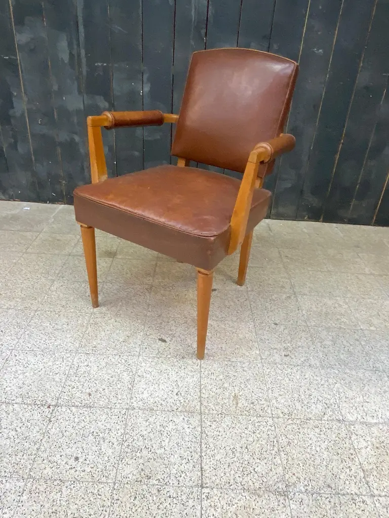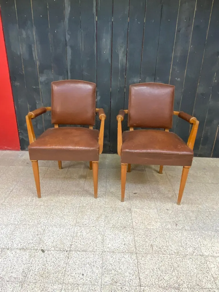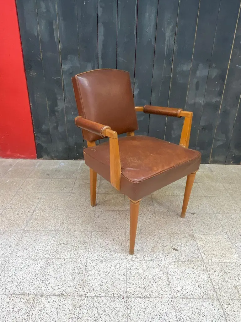 3 art deco armchairs covered in leather, circa 1930the leather is stained but not torn, very correct general condition, beautiful patina;the price is for 1 , the buyer can buy 1 , 2 or 3 armchairs