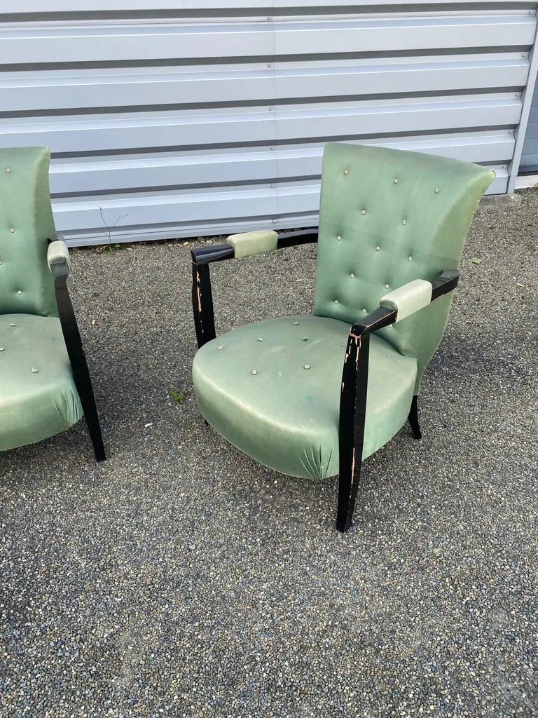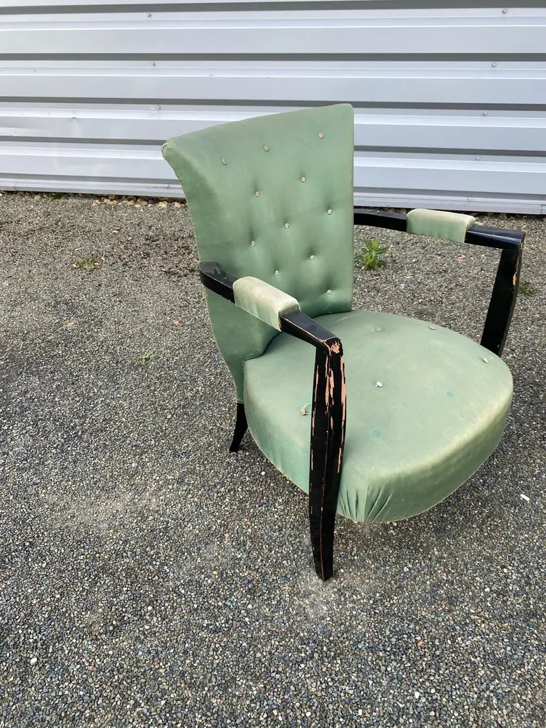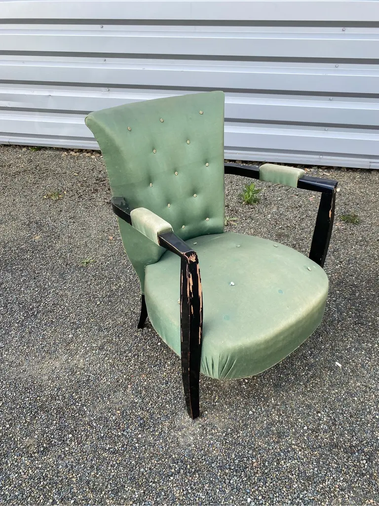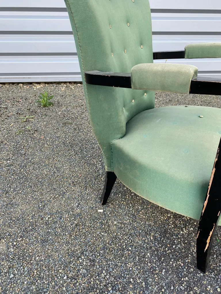 3 Art Deco armchairs in blackened wood, circa 1940.Patina and coating to be redone.