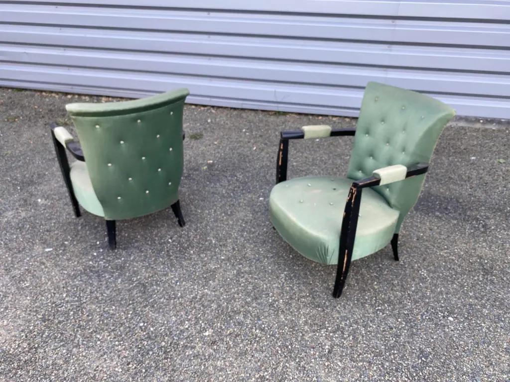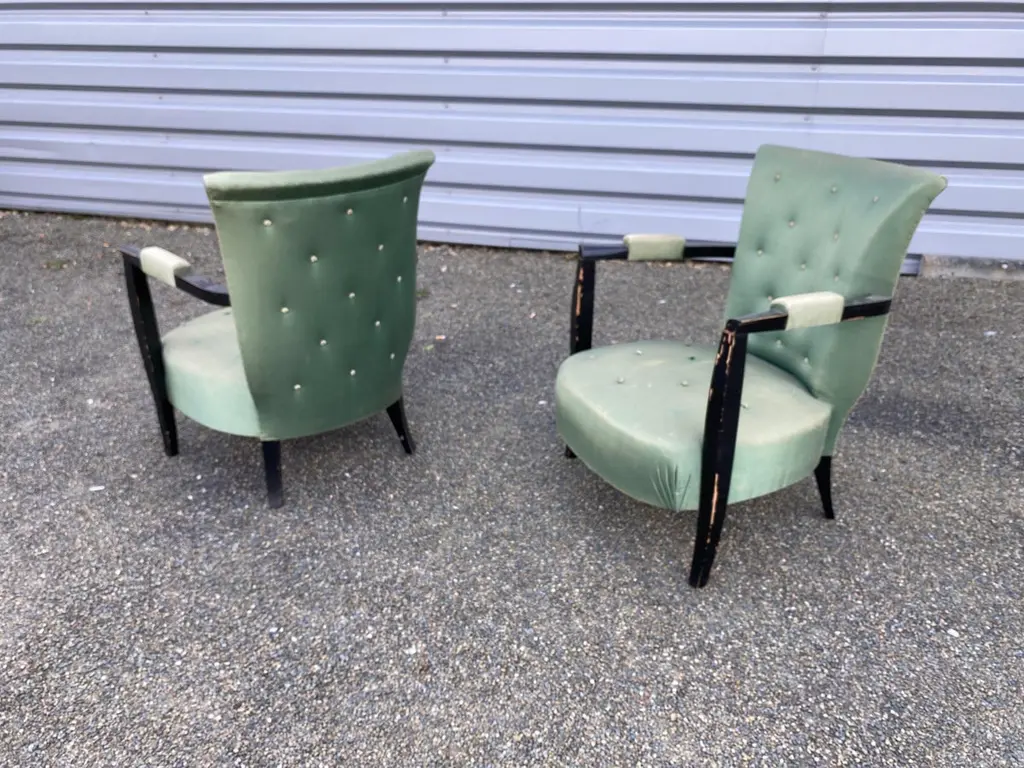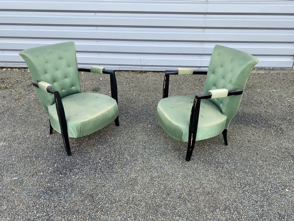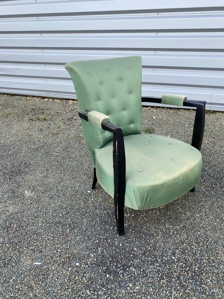 3 Art Deco armchairs in blackened wood, circa 1940.Patina and coating to be redone.