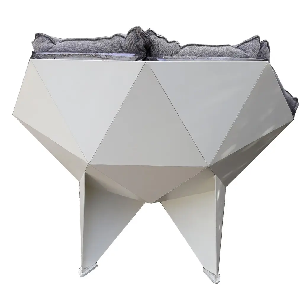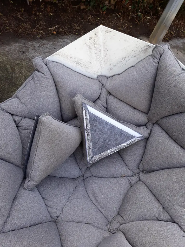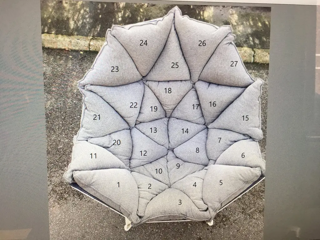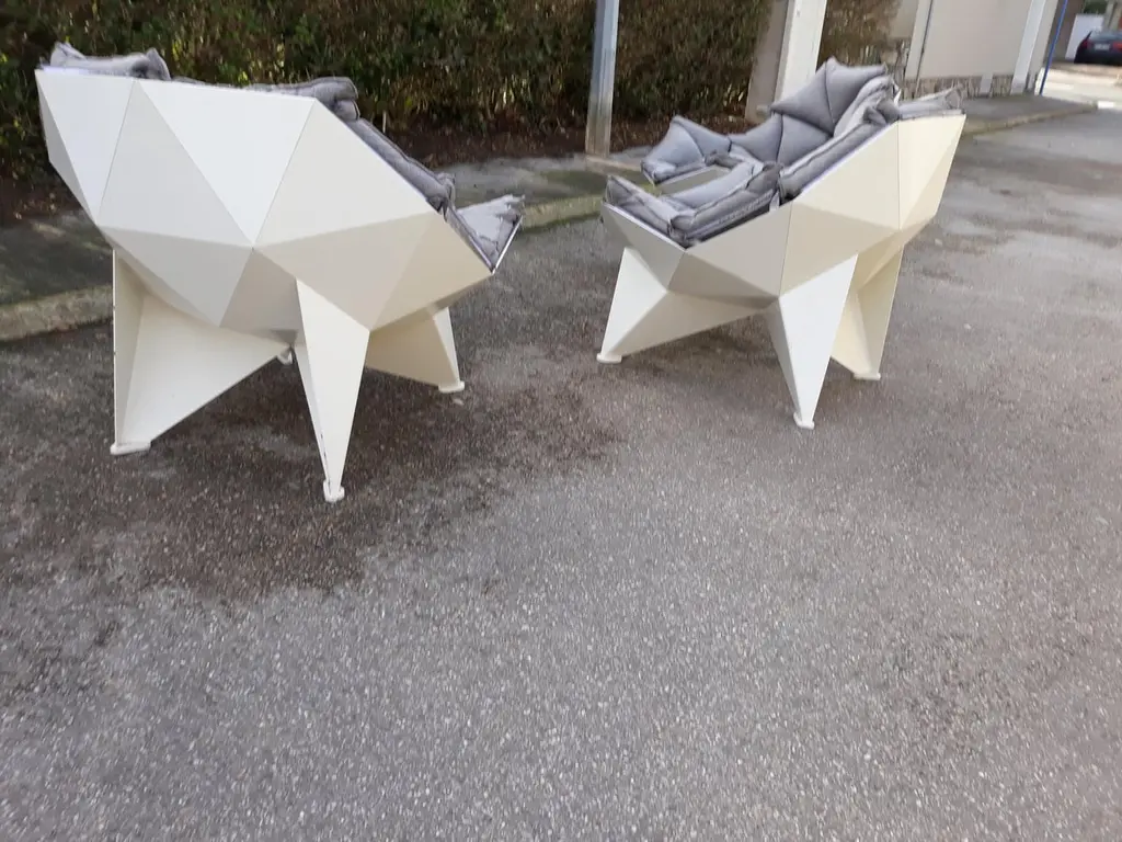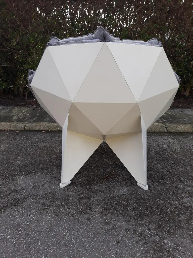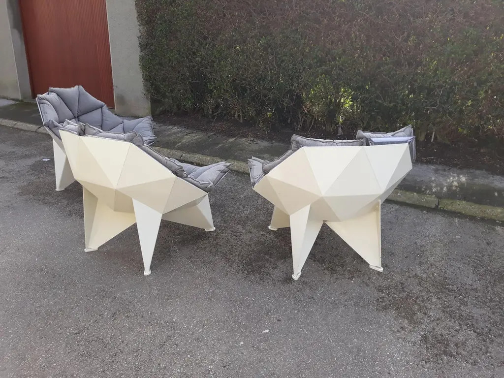 3 large Original armchairs in lacquered metal structure honeycomb, with 27 small removable cushions,circa 1970-1980Quite heavy, 30 kg per chairTraces of wear on the paint and cushions.