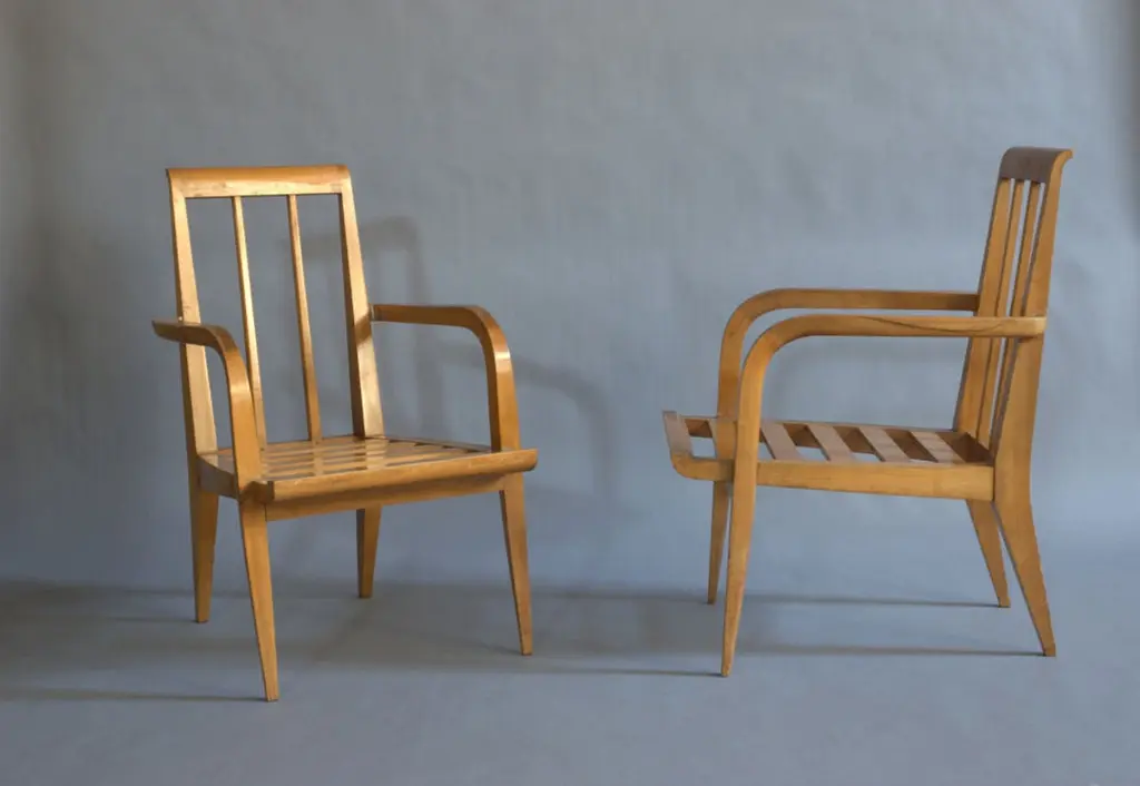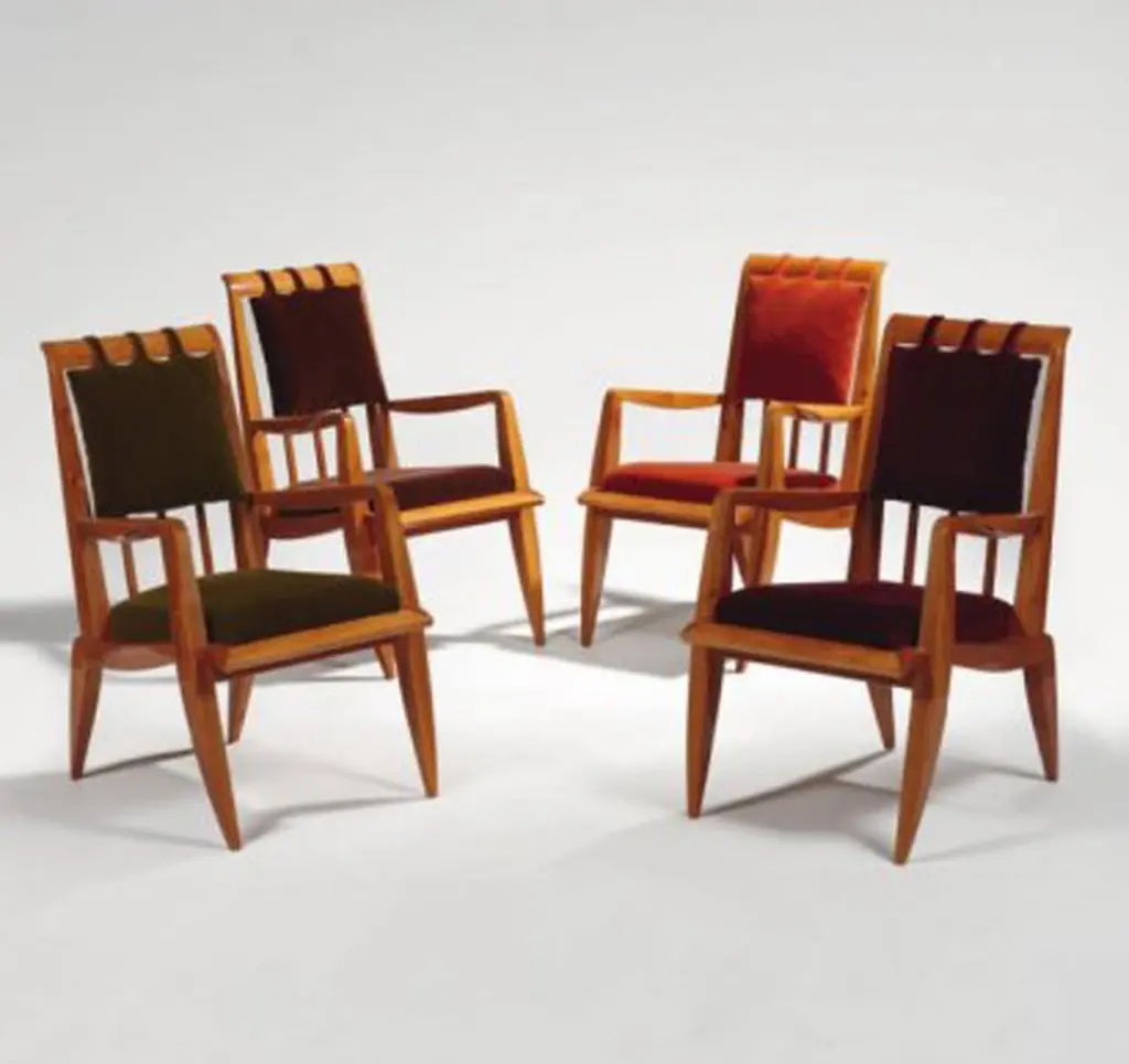 4 Fine 1950s Cherry Armchairs By Roger Landault
