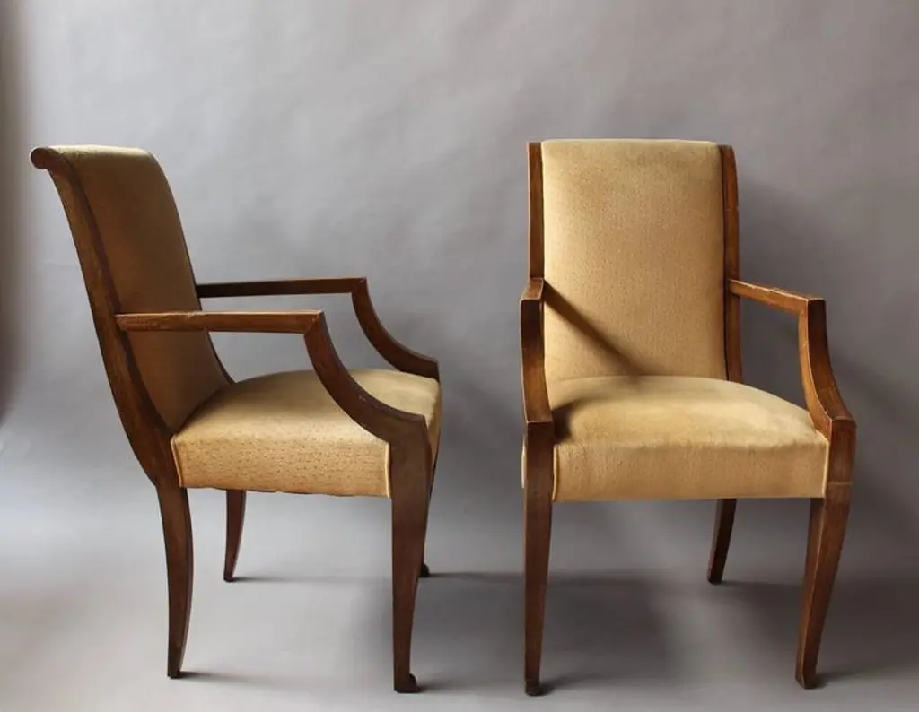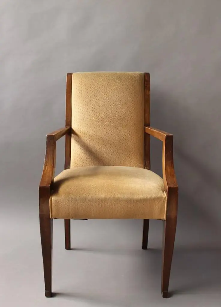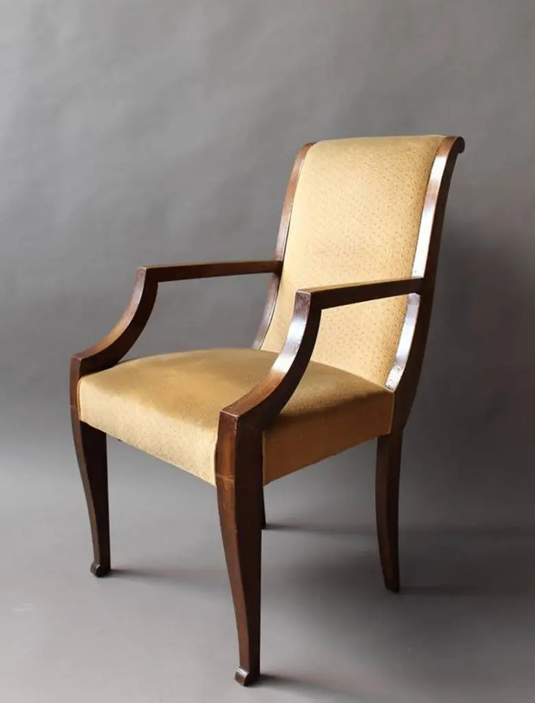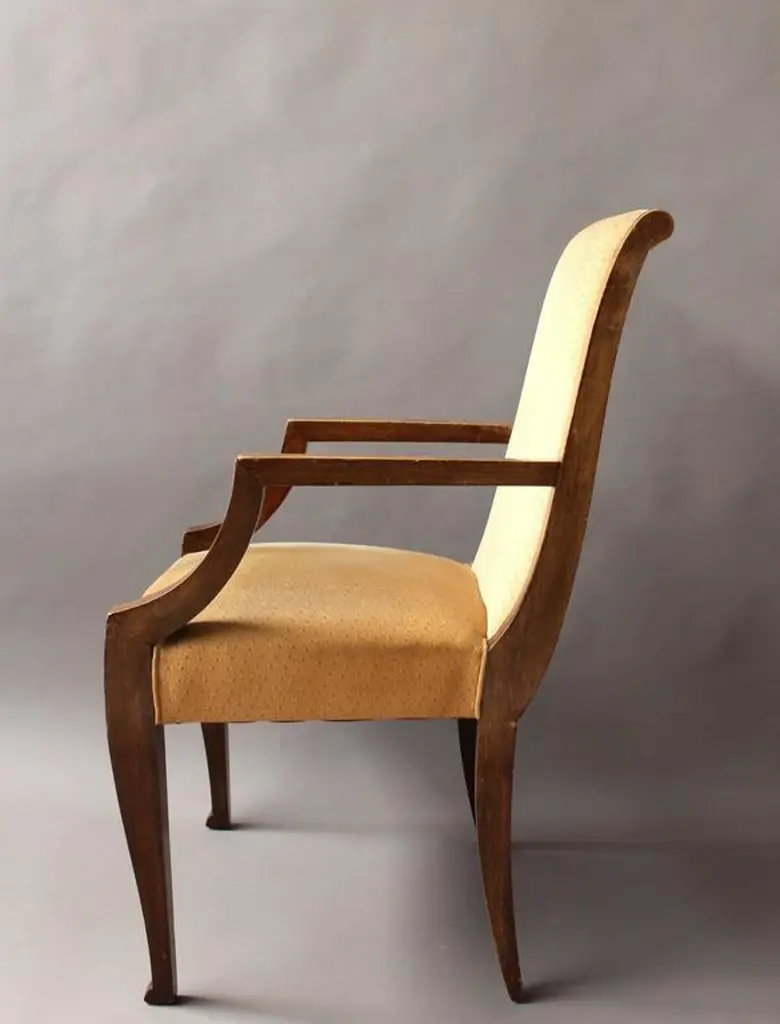 4 Fine French Art Deco Walnut Bridge Armchairs