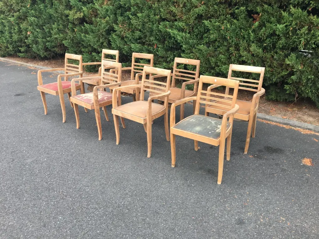 8 Art Deco armchairs, circa 1930-1940.to be restored.the wood is dirty but in very good condition.