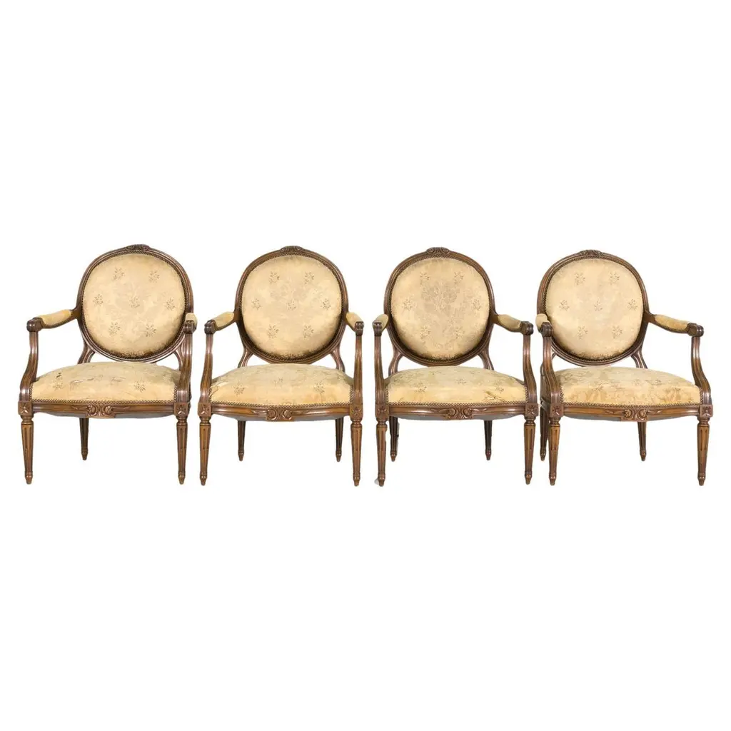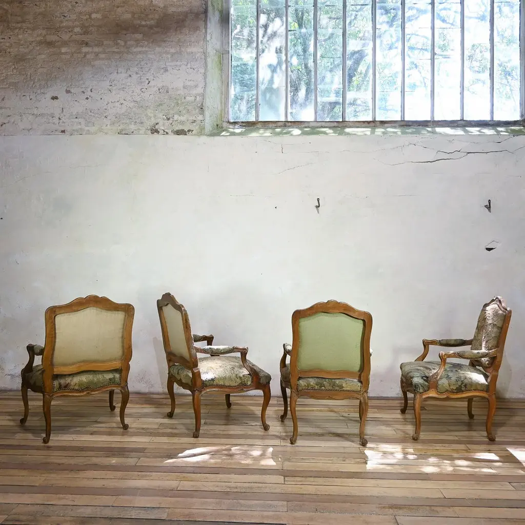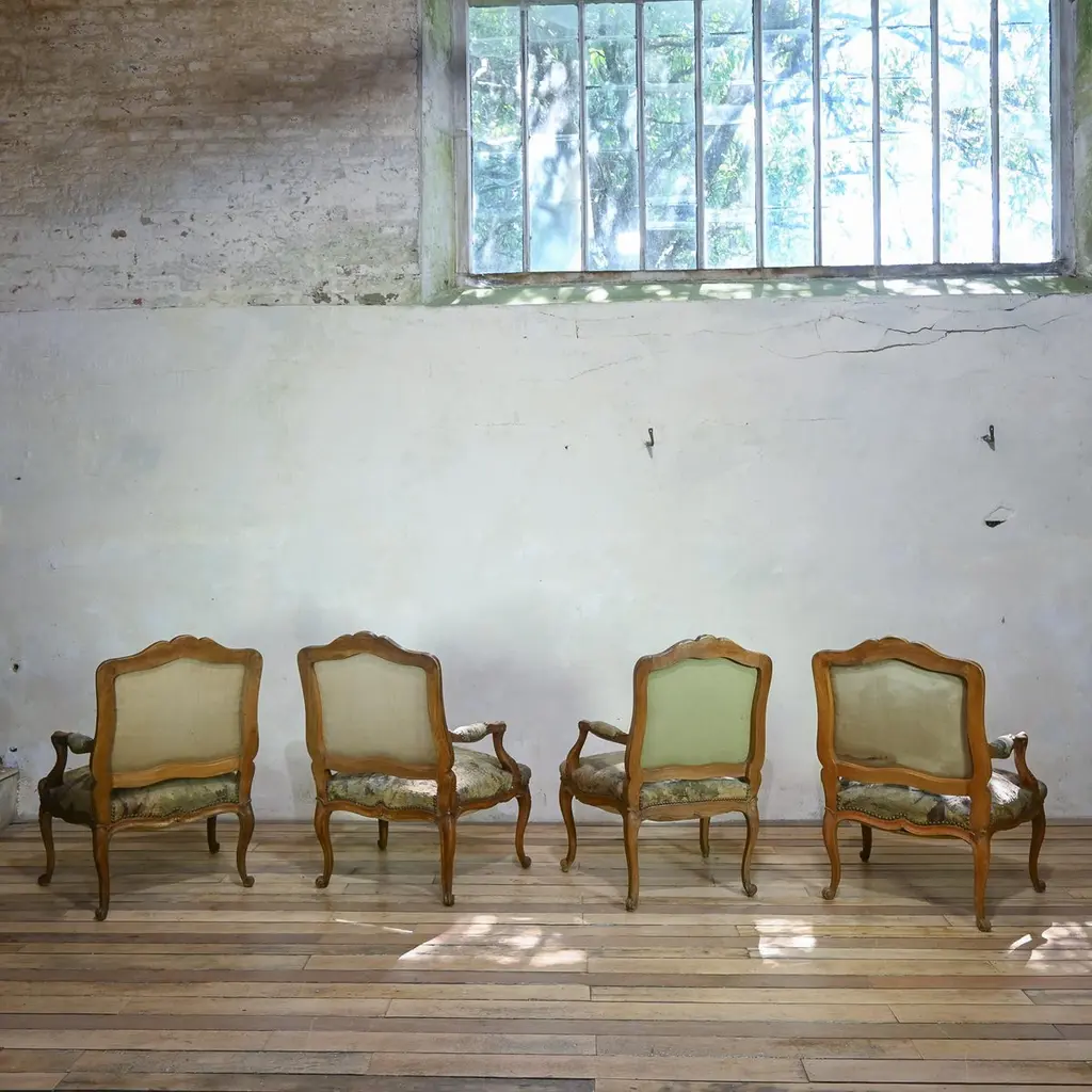 A Set Of Four 19th Century French Louis Xv Fauteuils Open Armchairs