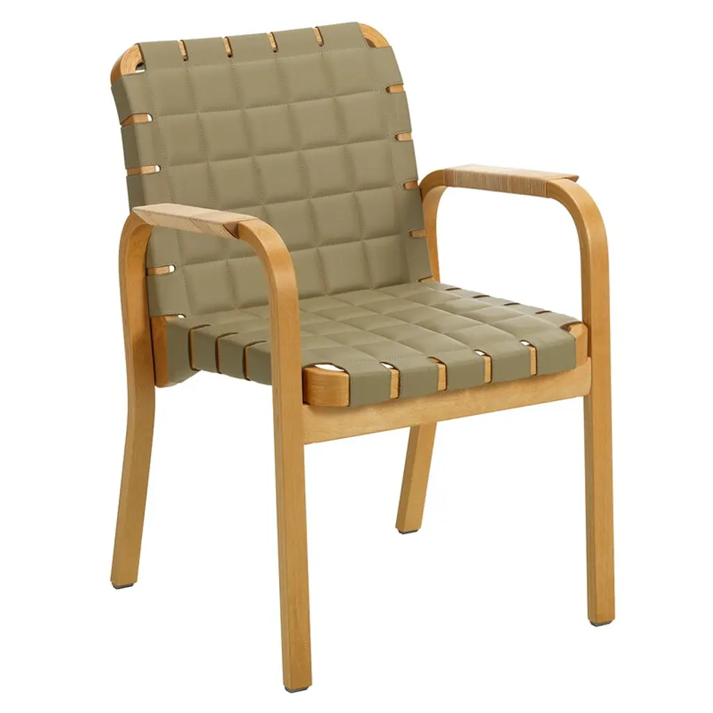 Artek’s armchair 406 is a true classic designed by Alvar Aalto in 1939, and consists of a bended birch frame and and a linen webbed seat. The breathable linen belt webbing provides complete and utter relaxation, as the natural material comfortably yields in response to the body. The seat is also easily replaceable, adding to the longevity of the durable armchair. The light and airy design complements different styles of interiors, be it in private residences or public spaces.